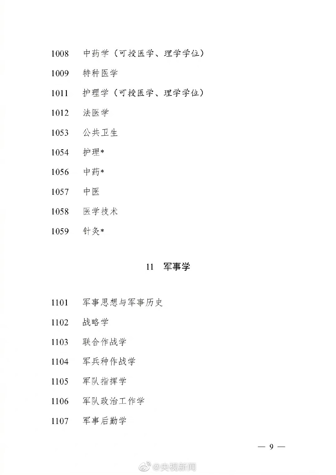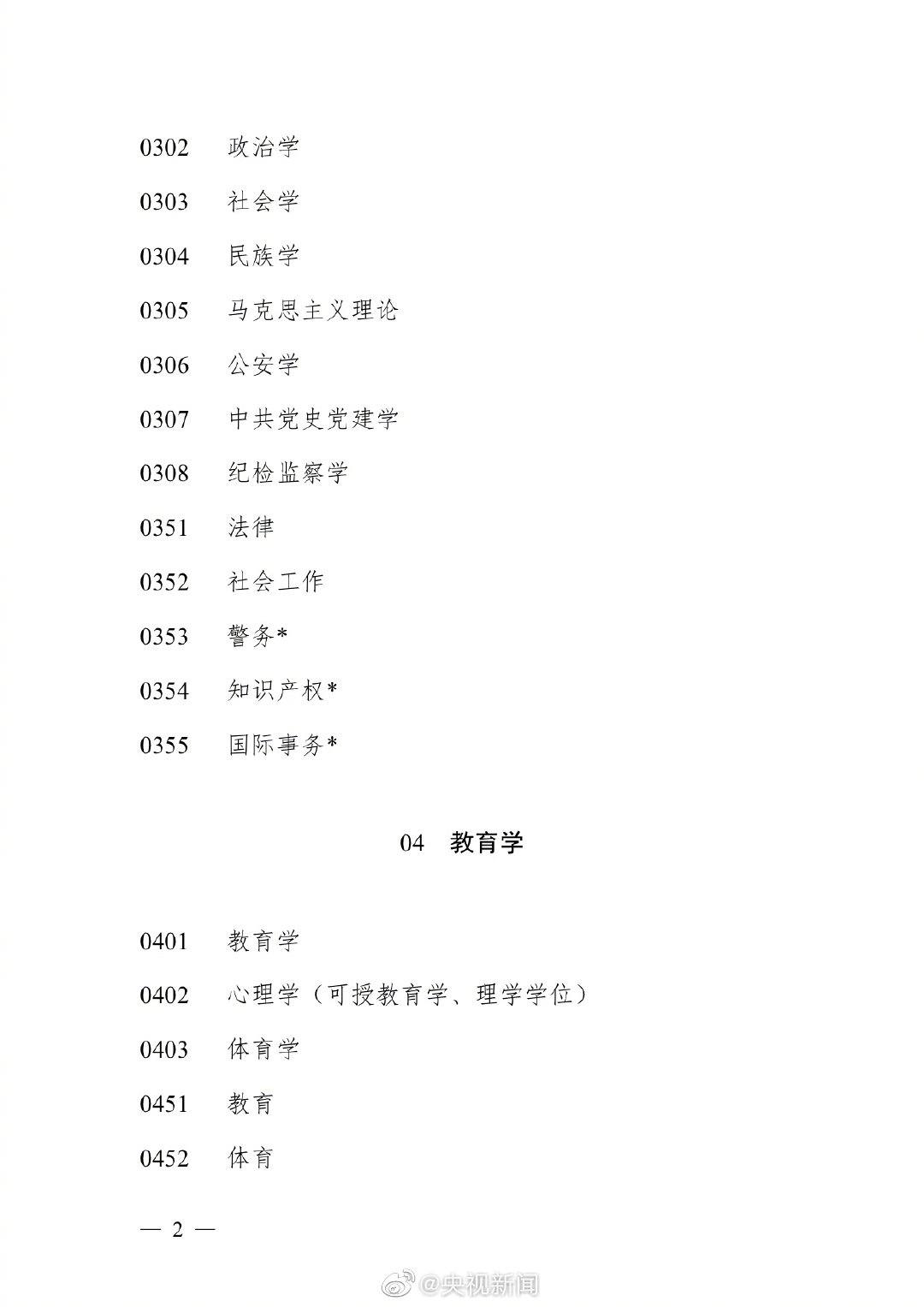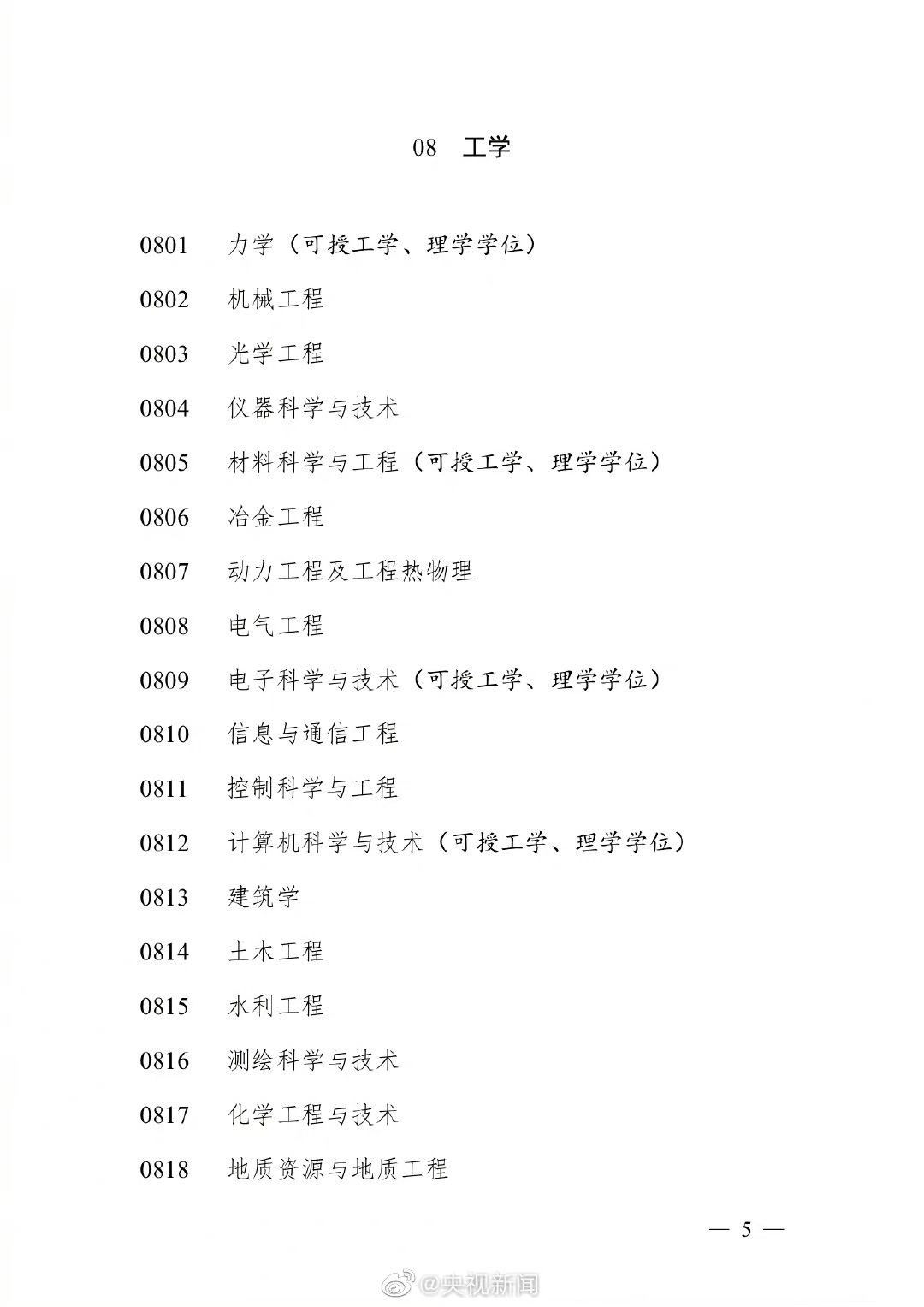 國務院學位委員會辦公室負責人介紹,新版目錄主要變化有以下五方面:一是所有門類下均設置了專業學位;二是加強了對科技前沿和關鍵領域的學科支撐,新設智能科學與技術、遙感科學與技術、納米科學與工程等一級學科或交叉學科;三是更好地服務國家治理體系與治理能力現代化的需要,新設中共黨史黨建學、紀檢監察學、區域國別學等一級學科或交叉學科;四是加強對弘揚中華優秀傳統文化的學科專業支撐,在原有藝術學理論一級學科基礎上,設置了藝術學一級學科;五是進一步推進分類培養,強化了對學術型和應用型兩類高層次人才培養的基礎支撐。