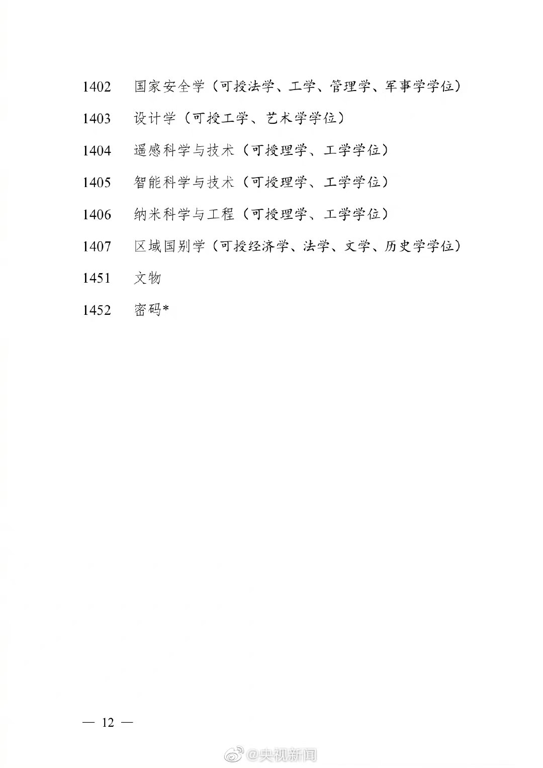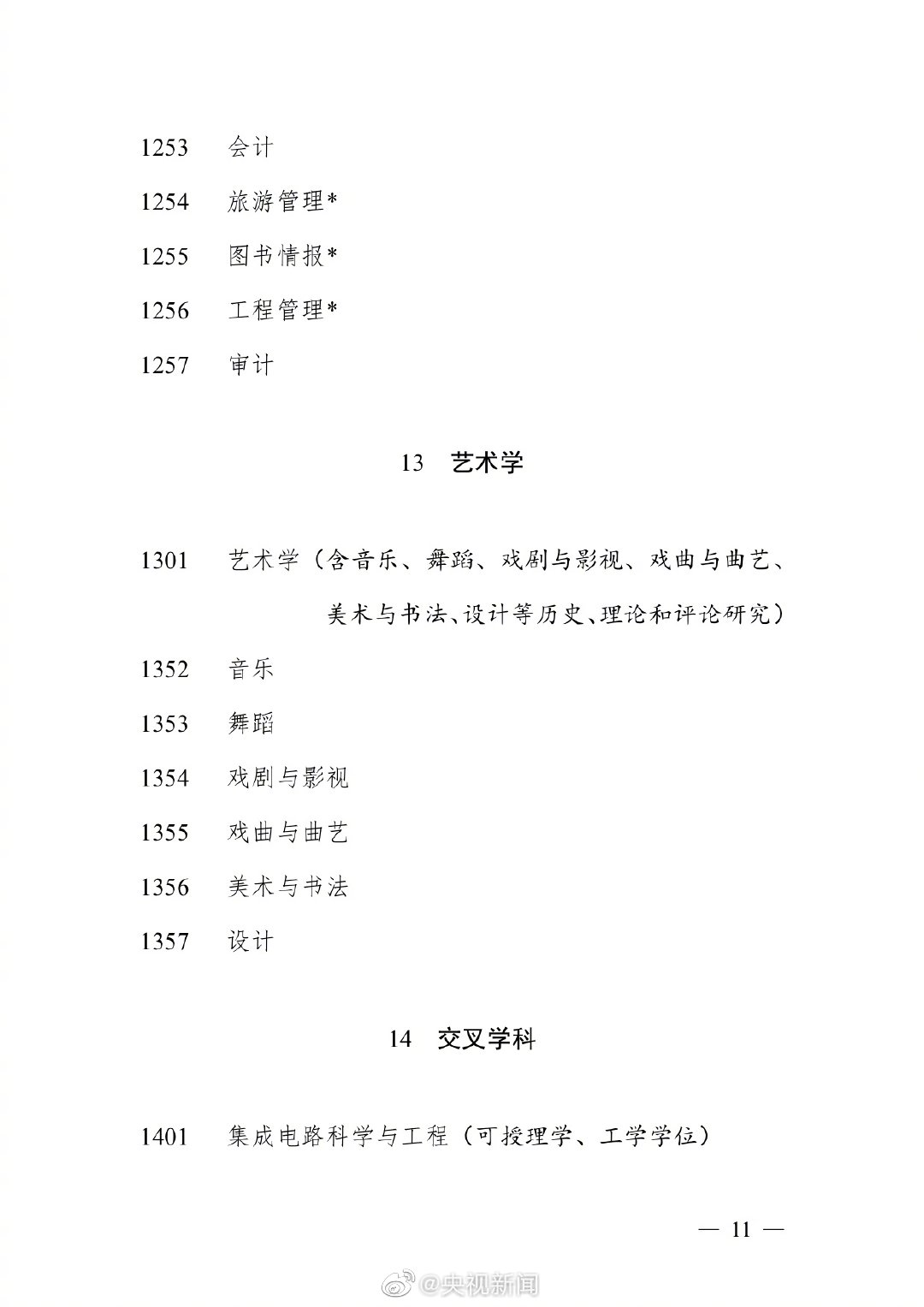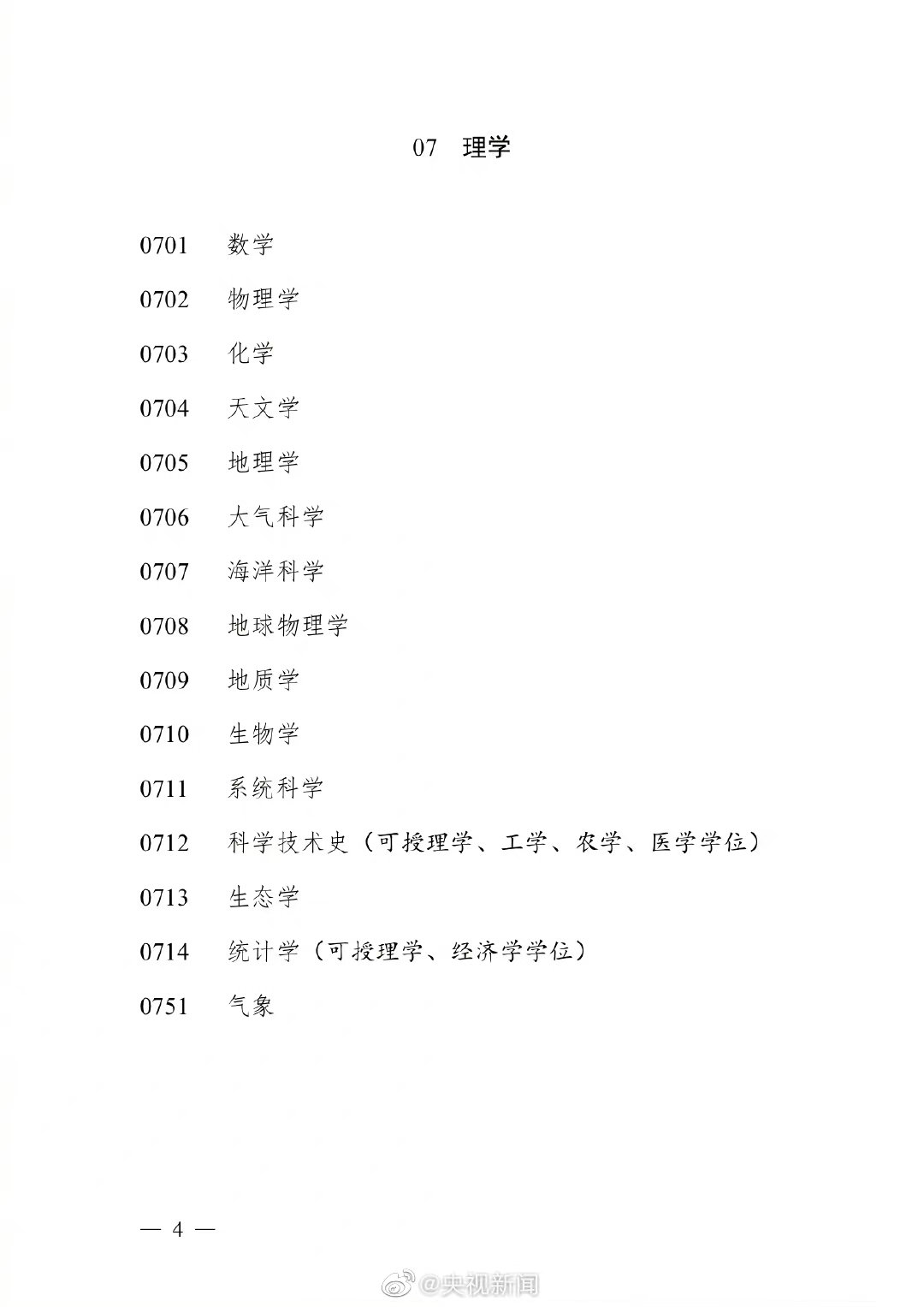 國務院學位委員會辦公室負責人介紹,新版目錄主要變化有以下五方面:一是所有門類下均設置了專業學位;二是加強了對科技前沿和關鍵領域的學科支撐,新設智能科學與技術、遙感科學與技術、納米科學與工程等一級學科或交叉學科;三是更好地服務國家治理體系與治理能力現代化的需要,新設中共黨史黨建學、紀檢監察學、區域國別學等一級學科或交叉學科;四是加強對弘揚中華優秀傳統文化的學科專業支撐,在原有藝術學理論一級學科基礎上,設置了藝術學一級學科;五是進一步推進分類培養,強化了對學術型和應用型兩類高層次人才培養的基礎支撐。