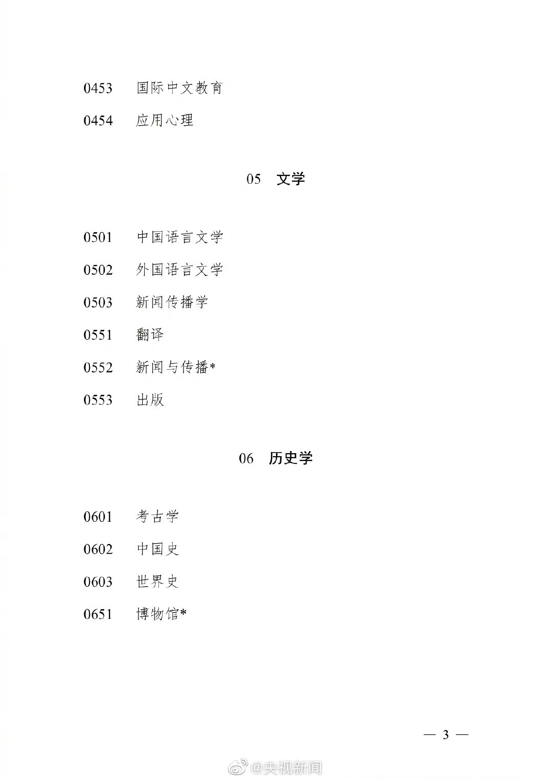 新華社北京9月14日電 新華社記者14日從教育部獲悉,國務院學位委員會、教育部近日印發了《研究生教育學科專業目錄(2022年)》和《研究生教育學科專業目錄管理辦法》。新版目錄有14個門類,共有一級學科117個,博士專業學位類別36個,碩士專業學位類別31個。這是我國第5版研究生教育學科專業目錄,將自2023年起實施。