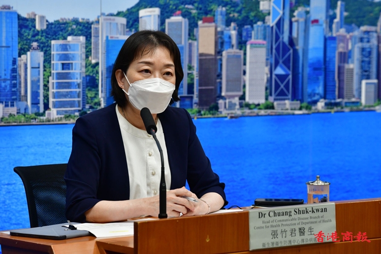 衞生署衞生防護中心傳染病處主任張竹君表示,在變異病毒株方面,懷疑帶BA.4或BA.5佔比為86.6%,若按比例及以變異變毒分支推算,BA.5為約79.9%、BA.4只有6.6%、BA.2.12.1則有約2.1%,而BA.2.2下降至約10.9%。