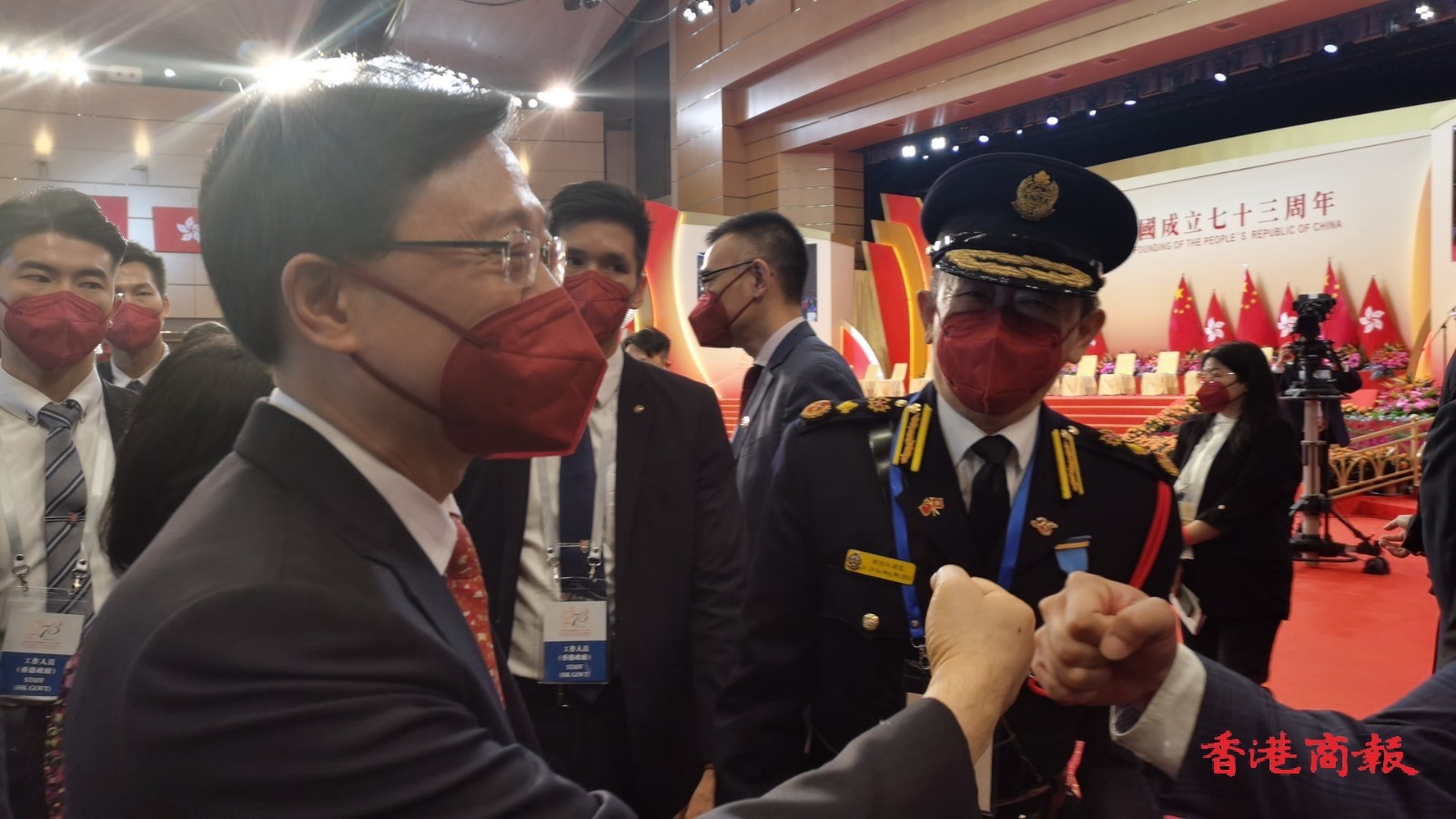 首次以行政長官身份出席國慶酒會的李家超,經典的黑西裝、白襯衣、紅領帶,看上去精神爽利,致辭時更是中氣十足,沒有官腔,語調順暢,似乎在和市民對談,隔着口罩都可以感受到超哥心情大好,對未來、對香港的信心。新政府開局3個月,還是比較順輰的,期待超哥新篇內容更豐富。