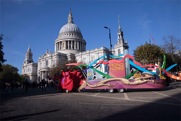 香港駐倫敦經濟貿易辦事處(倫敦經貿辦)於11月12日(倫敦時間)參加倫敦金融城市長就職花車巡遊。倫敦經貿辦的花車展示了香港作為國際金融中心的地位。