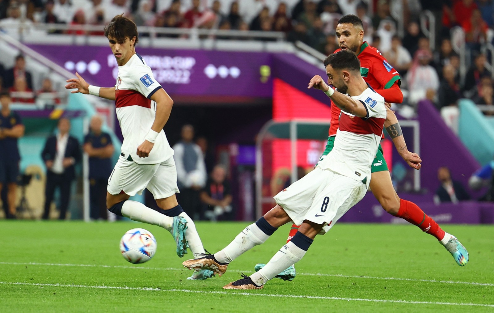 換邊後,摩洛哥率先有威脅埋門,薛耶治右路罰球傳中,造成混亂,幸好迪奧高哥斯達及時拍出。葡軍主帥費蘭度山度士在51分鐘換入C朗及祖奧簡些路,以加強攻力;在摩洛哥中堅路曼沙斯傷出,葡萄牙攻勢一浪接一浪。58分鐘,干卡路拉莫斯接應傳中,無人看管下頂斜。6分鐘後,般奴費南迪斯禁區頂起腳,皮球貼住楣頂出界。摩洛哥全軍退守,葡萄牙形成圍攻,他們在69分鐘再換入拉菲爾利亞奧、域天拿,但未有太大成效。82分鐘,祖奧費菲歷斯接應C朗回傳施射,又被耶辛尼保奴飛身救出。補時1分鐘,C朗接應長傳成半單刀姿態,惜其射門再被有演出穩定的耶辛尼保奴沒收。摩洛哥的後備球員華列查迪拉在補時3分鐘因侵犯對手兩黃一紅被逐。惟多打一人的葡萄牙餘下時間,仍未能平反敗局,比比於96分鐘接應左路傳中頂斜之後,摩洛哥最終贏1比0,史上首次打入4強。