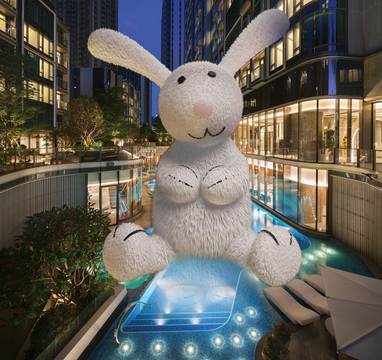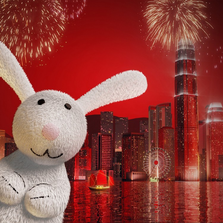 他今次為恒基地產創作的作品,邁進虛擬領域,重新詮釋經典作品《月兔》,讓牠「登陸香港」,在著名地標建築間自由穿梭遊覽;在電車頂觀賞醒獅賀歲;跑到海旁欣賞璀璨奪目的維港夜景;穿梭到燈火通明的上海街頭,與大家一同分享兔年美好願景。