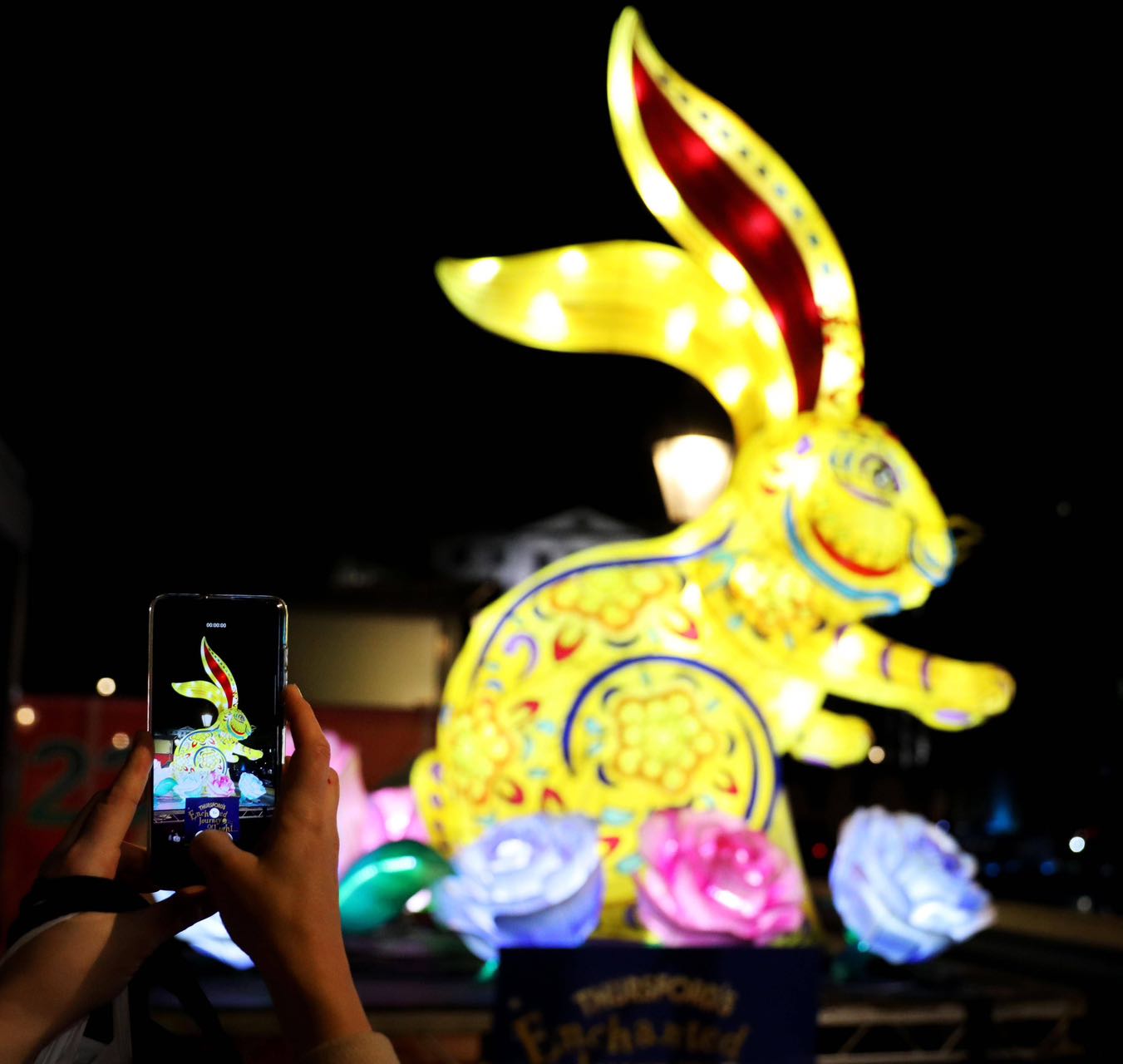 廣場上栩栩如生的玉兔造型,也吸引路人紛紛駐足觀看,合影留念。(圖源:網絡)