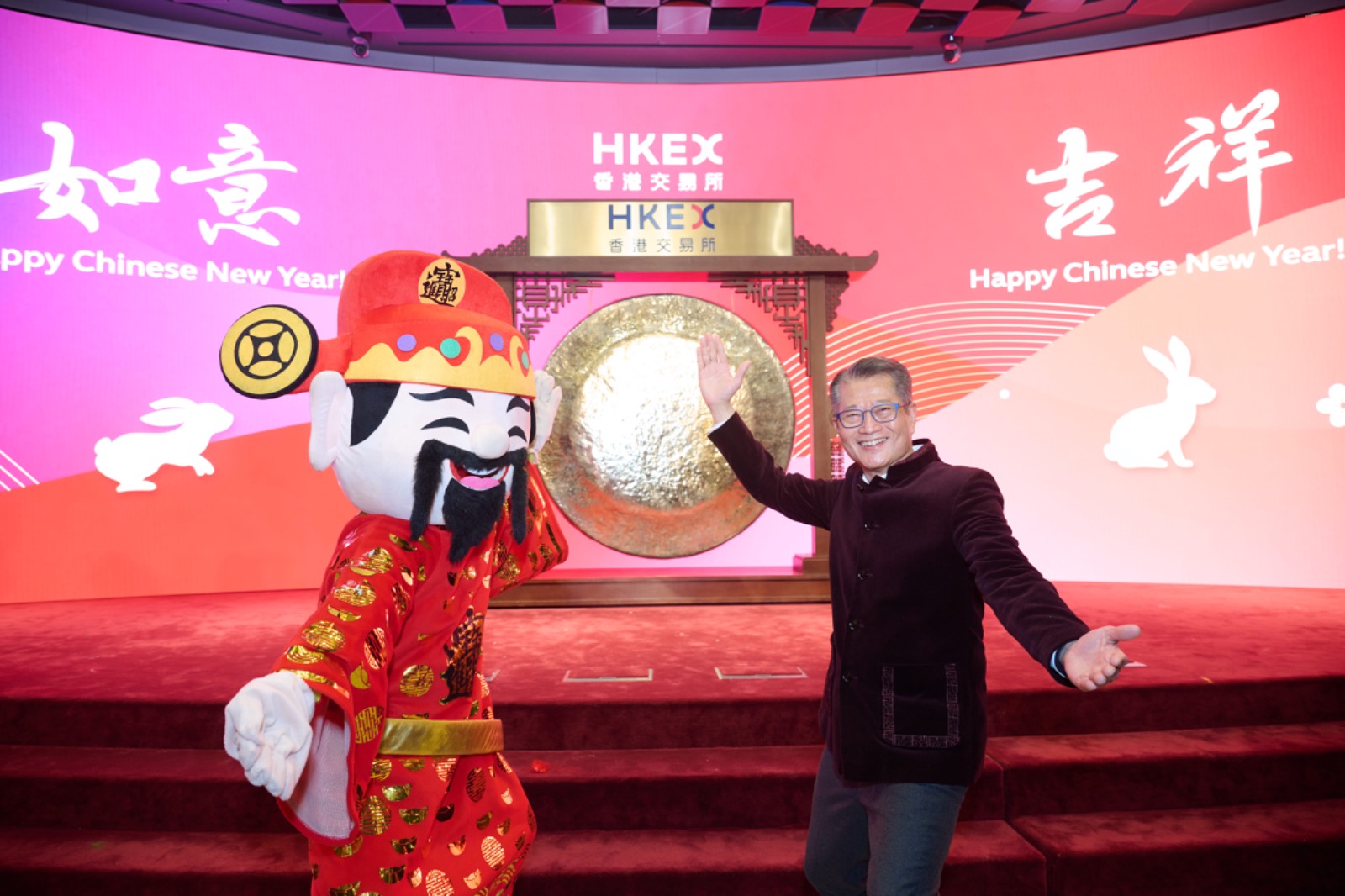 財政司司長陳茂波今日出席港交所農曆新年首個交易日開市儀式。