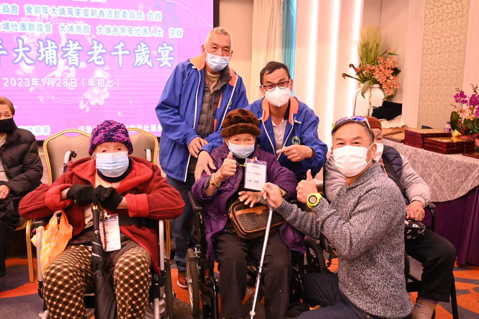 由大埔民政事務處贊助,大埔鄉事委員會、癸卯年大埔萬家慶新春活動委員會合辦「2023癸卯年大埔耆老千歲宴」已於2023年1月28日(年初七)在大埔區10間酒樓舉行,招待約4000名年屆73歲或以上的長者參加,並向97歲或以上的長者,而最年長的人瑞已年屆111歲頒贈紀念金牌。