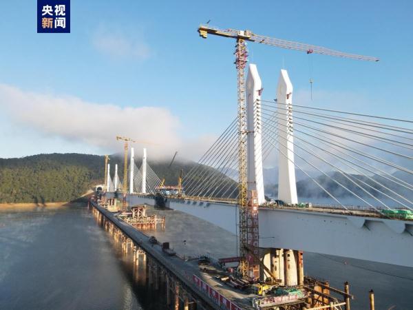 昌景黃高鐵休寧河特大橋建設現場