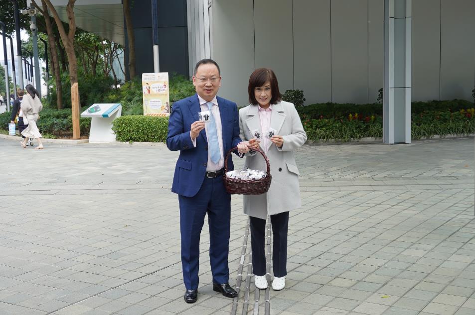 民建聯陳仲尼偕太太情人節向市民派朱古力