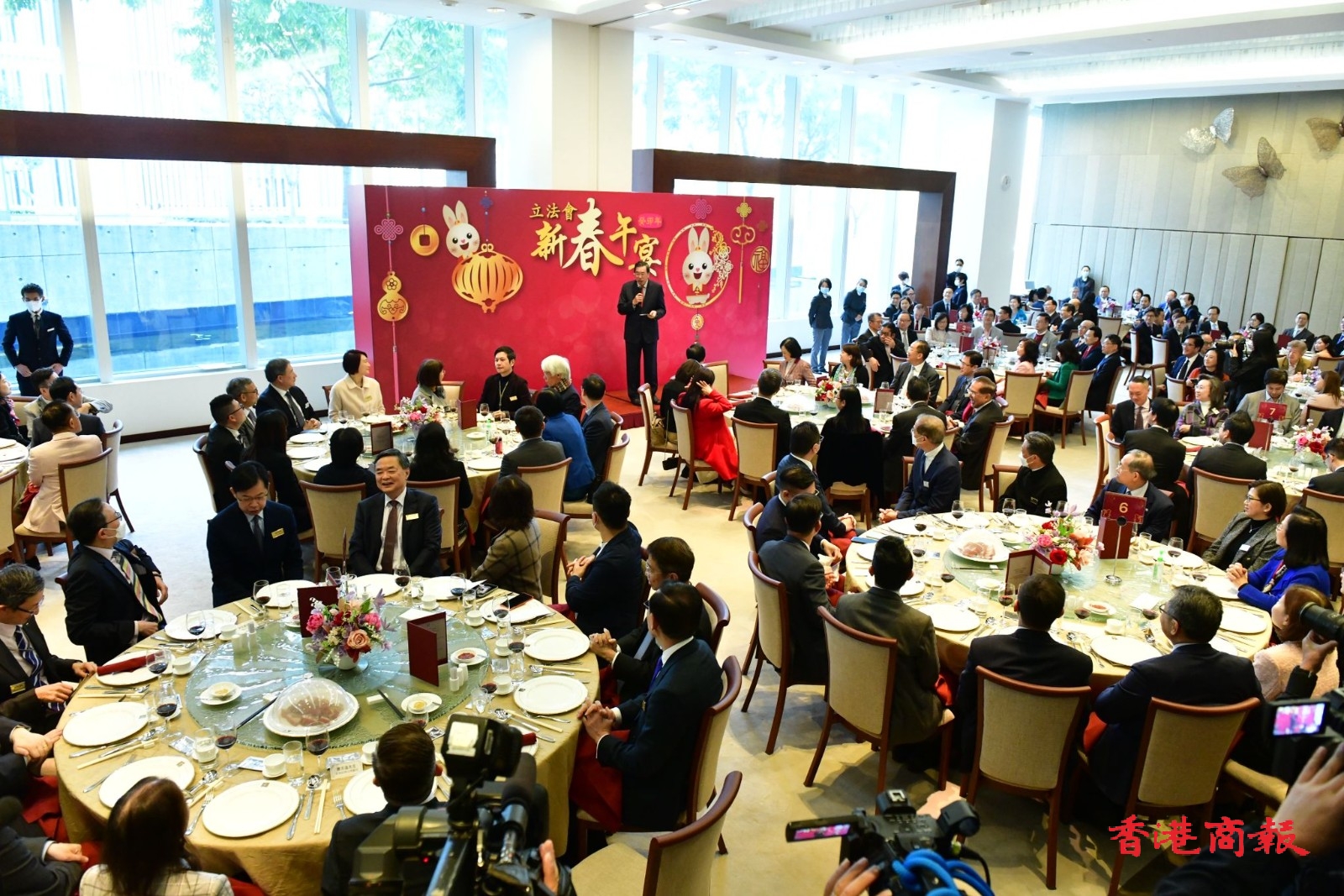 梁君彥於會上致辭時表示,今日的春茗別具意義,是過去三年疫情以來,立會第一次舉行春茗。他說踏入兔年,萬象更新,立法會的春茗亦回歸,既可讓大家歡聚一堂,共賀新春,亦展示香港全面、正面復常。