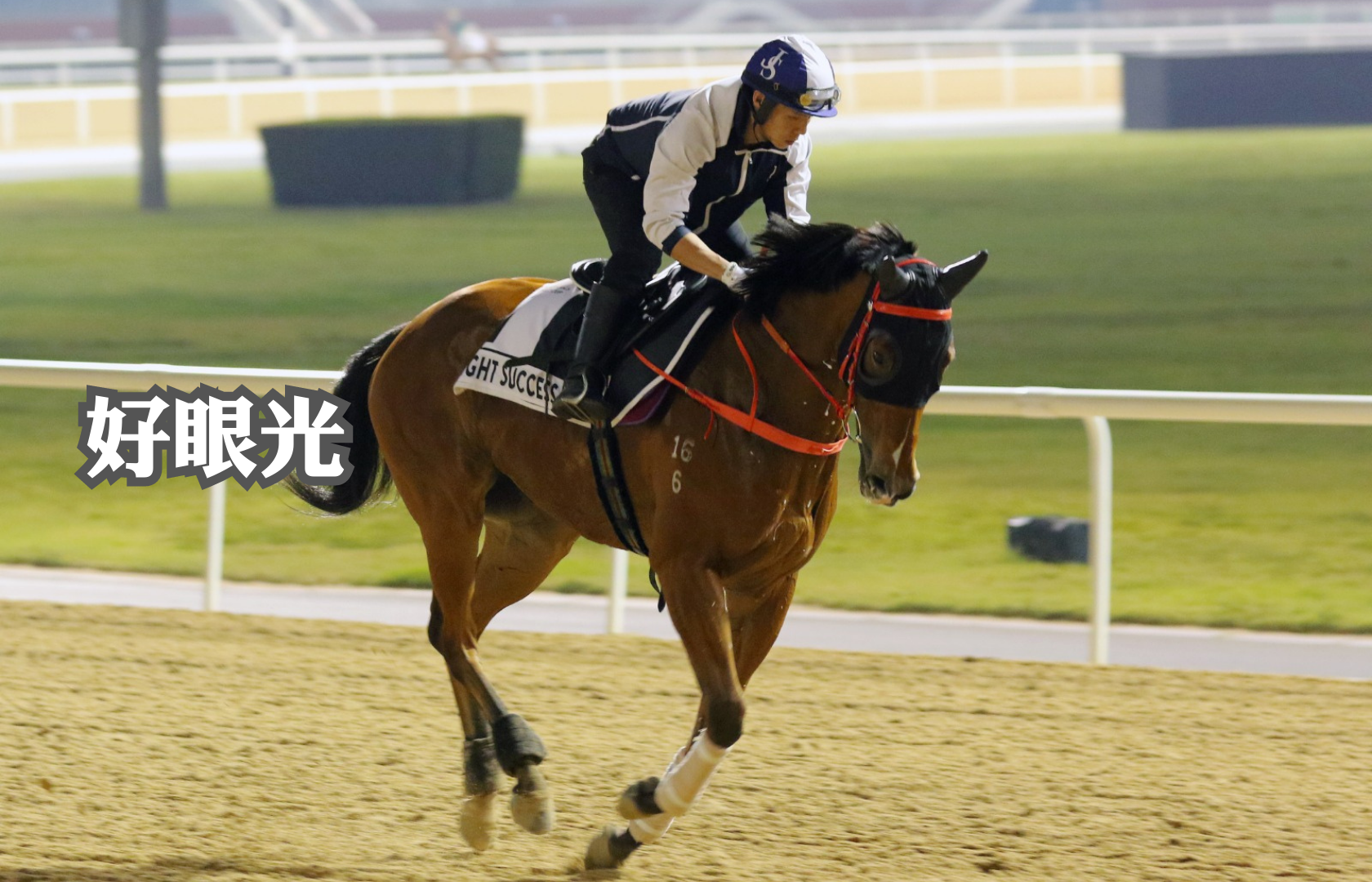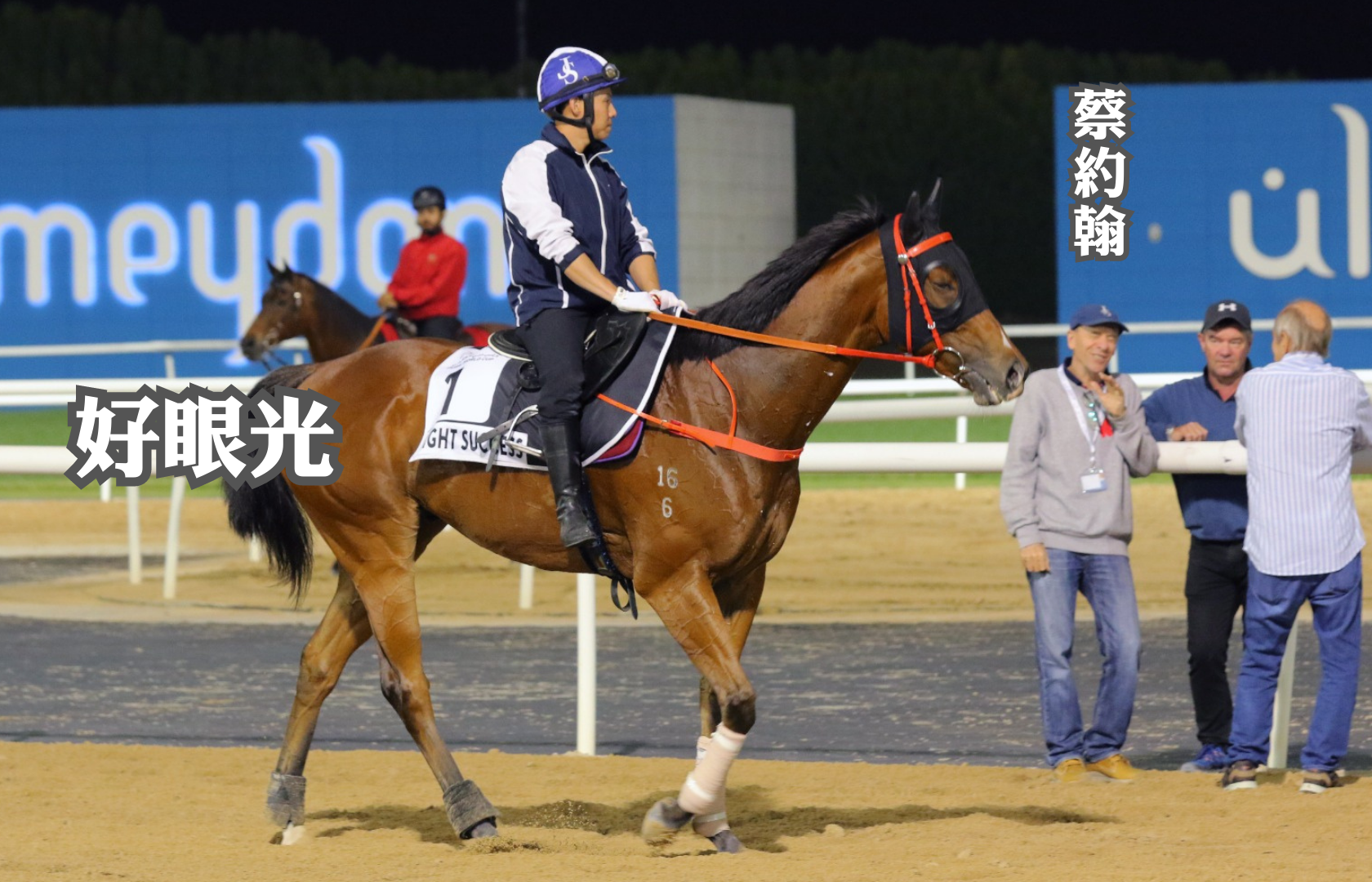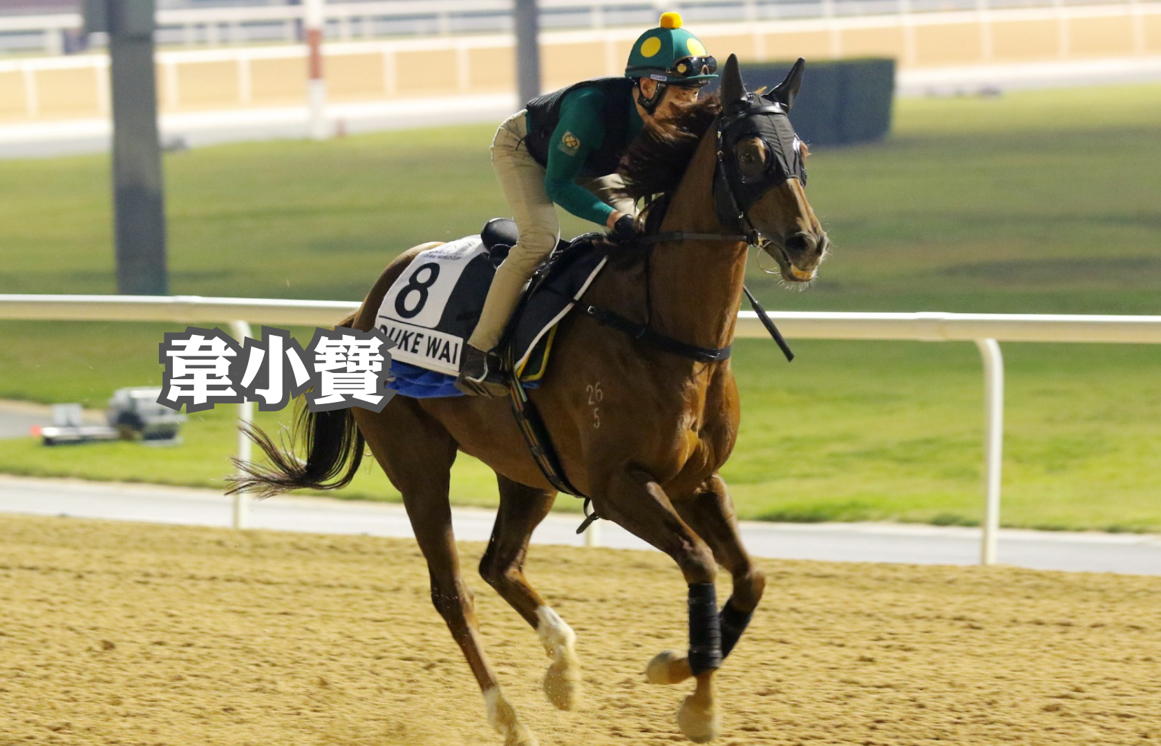 離賽事舉行前最後一日,港隊5駒同作最後備戰,「韋小寶」由副練魯柏軒主課,「龍鼓飛揚」續由助手操練,兩馬在泥地跑道只作慢跳。出戰第四場一級賽1200米草地阿喬斯短途錦標的「韋小寶」,將配周俊樂操刀,這是鞍上人首次遠征海外,騎者周三(22日)跑罷跑馬地夜賽後,隨即乘機前往杜拜,並於今早首度露面,對於今次征戰,周俊樂表示當然感到興奮,並感謝幕後支持,談及賽事形勢,他對「韋小寶」排七檔起步感到滿意,戰略上希望可在出閘後,守在領放馬之後兩個馬位左右,再於末段施展後勁爭勝。同跑阿喬斯短途錦標的蔡廄「好眼光」今早亦有露面,在泥地跑道進行操練,而蔡約翰繼續親自督操。
