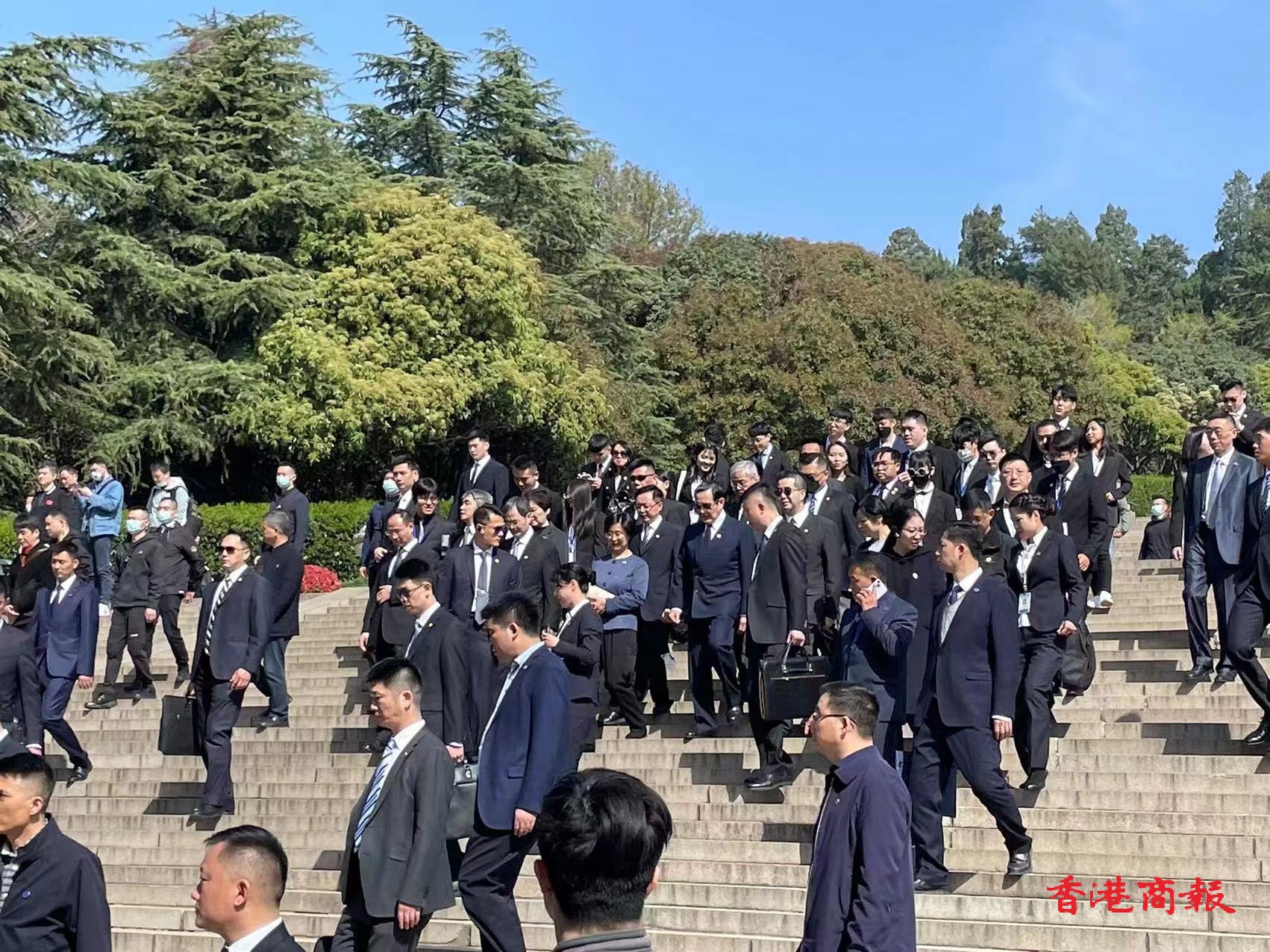 3月28日上午,馬英九拜謁中山陵。上午9時,馬英九乘車抵達中山陵博愛坊。馬英九着黑色西裝及領帶,戴黑色墨鏡,在江蘇省台辦主任練月琴陪同下,緩步拾級而上,約9時20分抵達祭堂,停留20分鐘後步出,與參訪團一行合影。當天上午,馬英九一行還參觀了孫中山紀念館。(記者:杜林、宋璟、崔豪 視頻:謝燁挺)