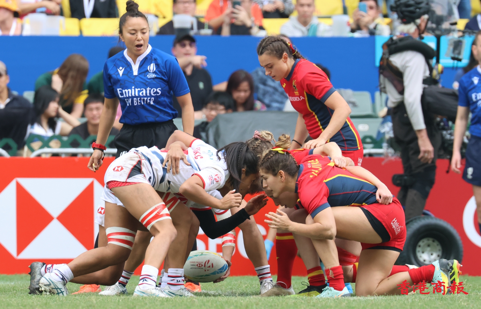 港隊在第3場分組賽的對手是英國,後者首日曾以5比0戰勝加拿大,整體實力在港隊之上,英國最終輕鬆大勝35比0。分組賽3戰全敗的港隊,之後在爭逐第9名的賽事遇上西班牙。她們開賽3分鐘即告失守,之後由奧亞娜回敬一次達陣,在射失附加罰球下,追近成5比7落後。西班牙其後發力再度得分,半場領先14比5。落後的港隊下半場未能得分之餘,兼且兩度失守,最終以5比24見負。
