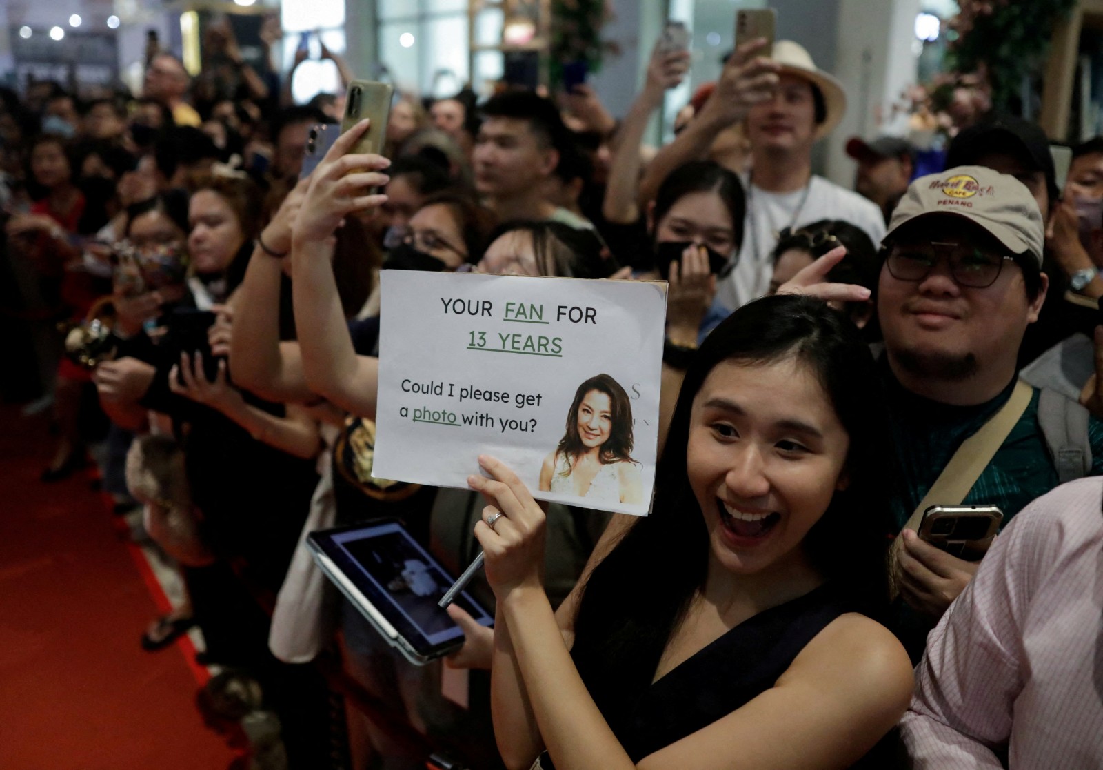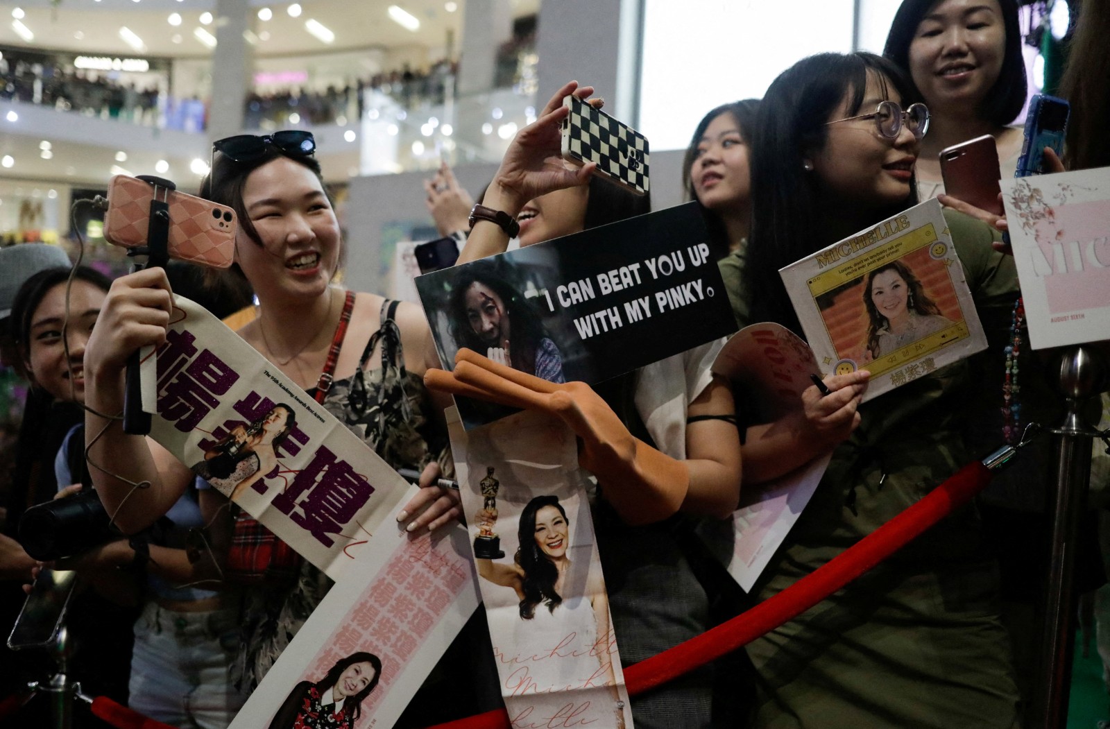 據美聯社報道,楊紫瓊當天帶着小金人出席在家鄉馬來西亞的一座商場舉行的大型粉絲見面會,現場聚集過千市民,站滿幾層商場。