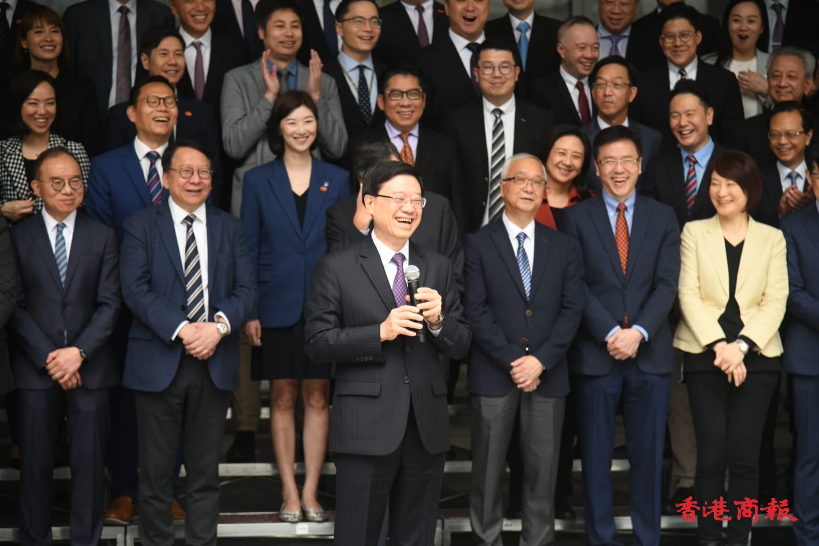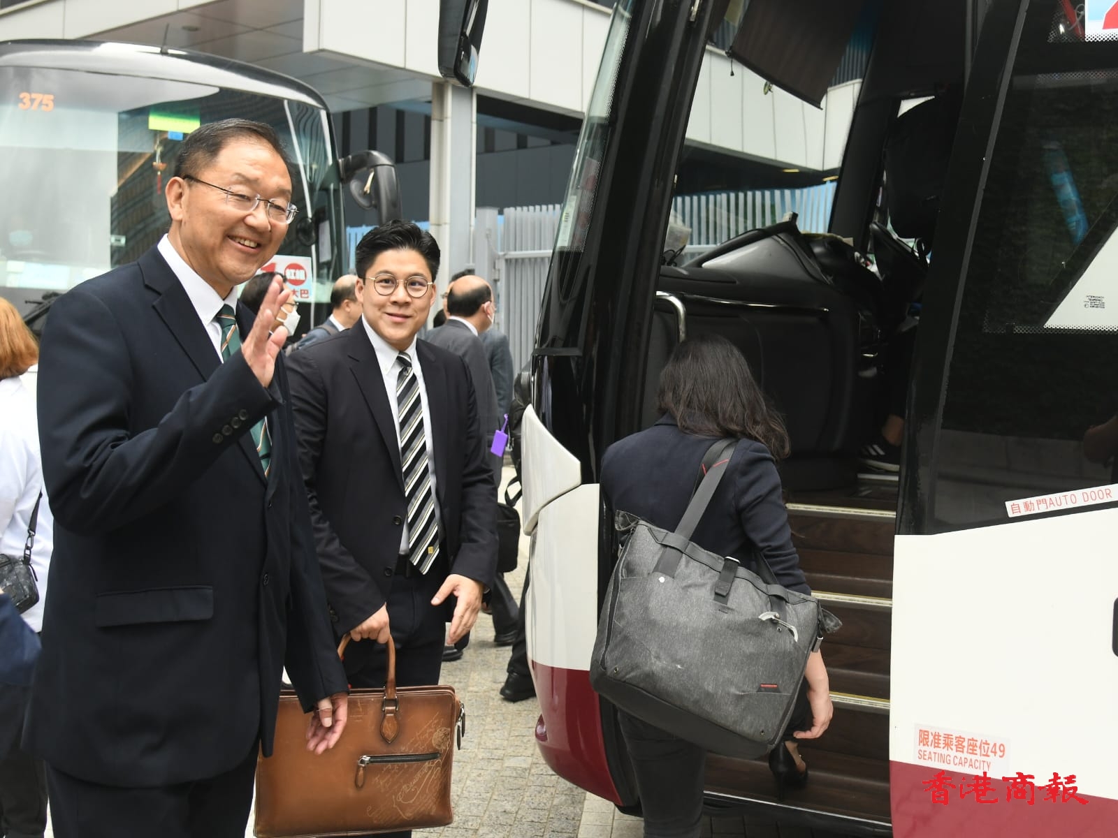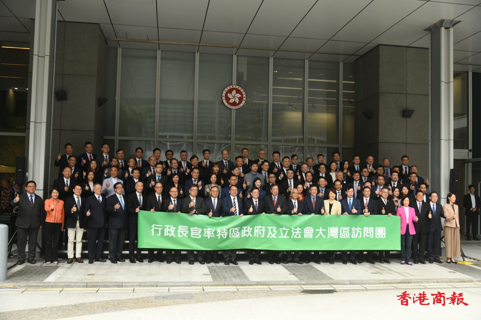 行政長官李家超今日(21日)下午3時率領政府官員及立法會議員前往大灣區內地城市訪問4天,全部人第一日一起到深圳,第二和第三日會兵分兩路,分別訪問東莞和佛山,李家超會輪流到兩組參與考察,第四日再全部人於廣州匯合。議員們人人表現興奮,出發前一起大合照,當李家超宣布出發後,再陸續踏上旅遊巴。