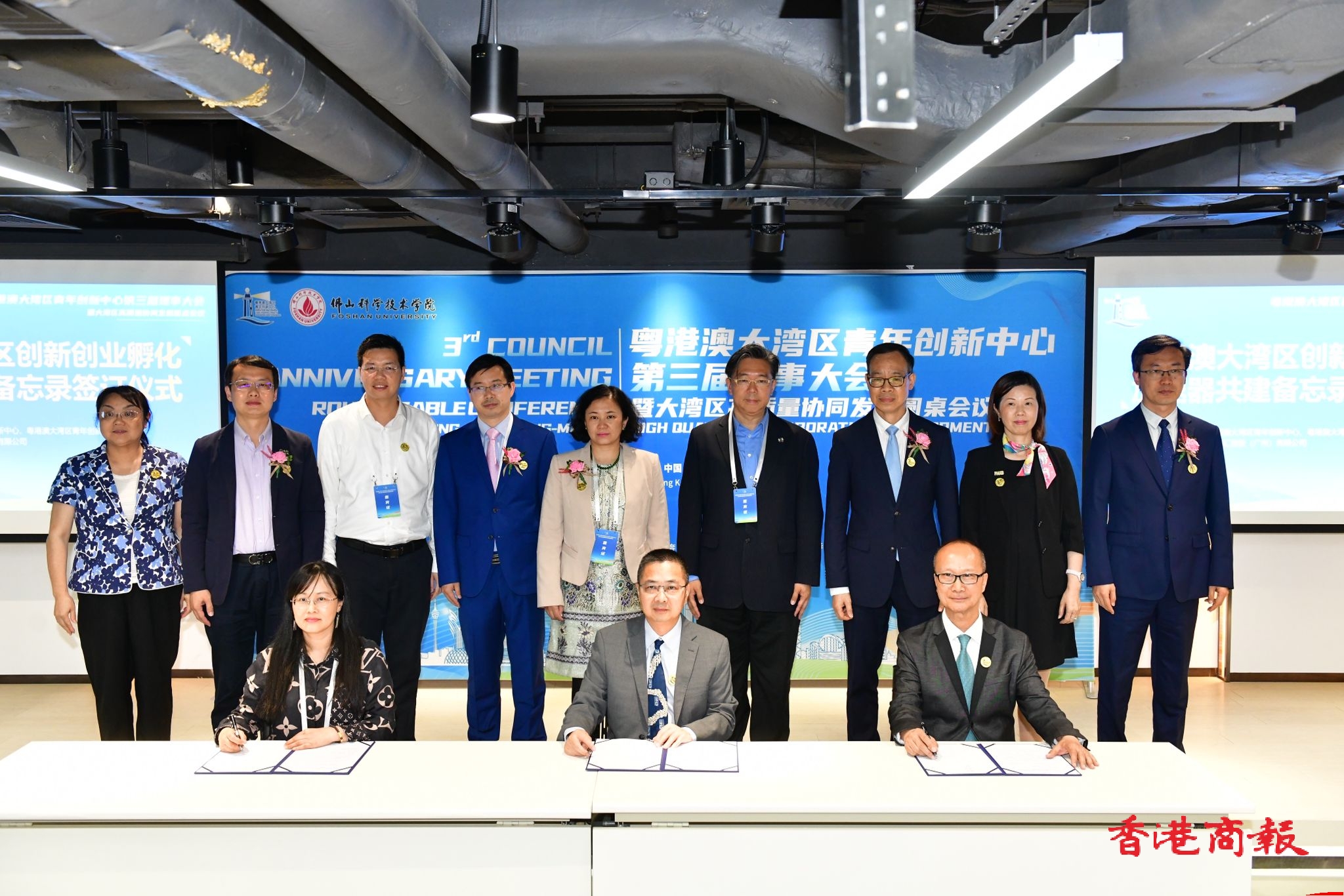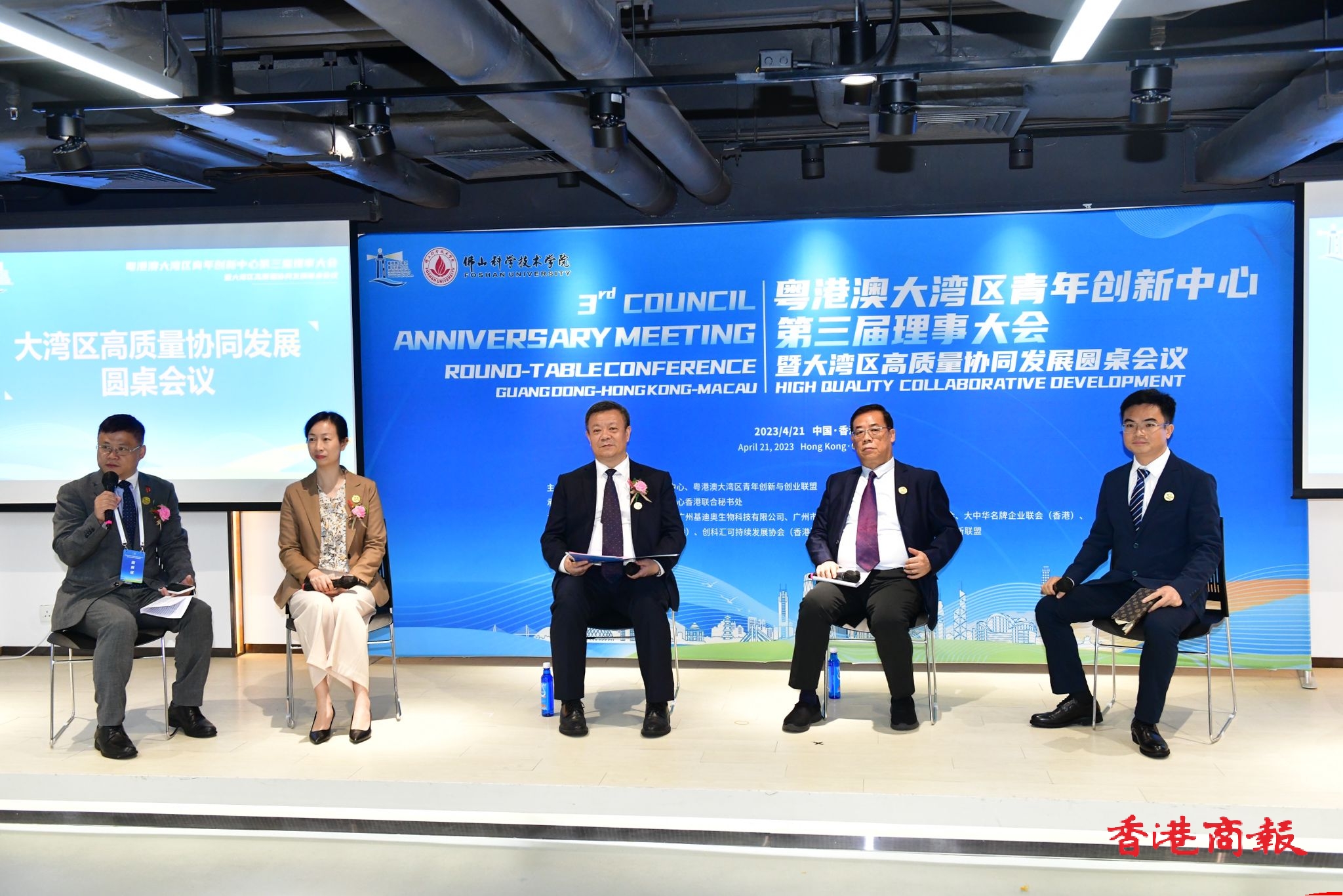頂圖:「粵港澳大灣區青年創新中心」第三屆理事會周年大會暨大灣區高質量協同發展圓桌會議今午舉行,超過200人參與。