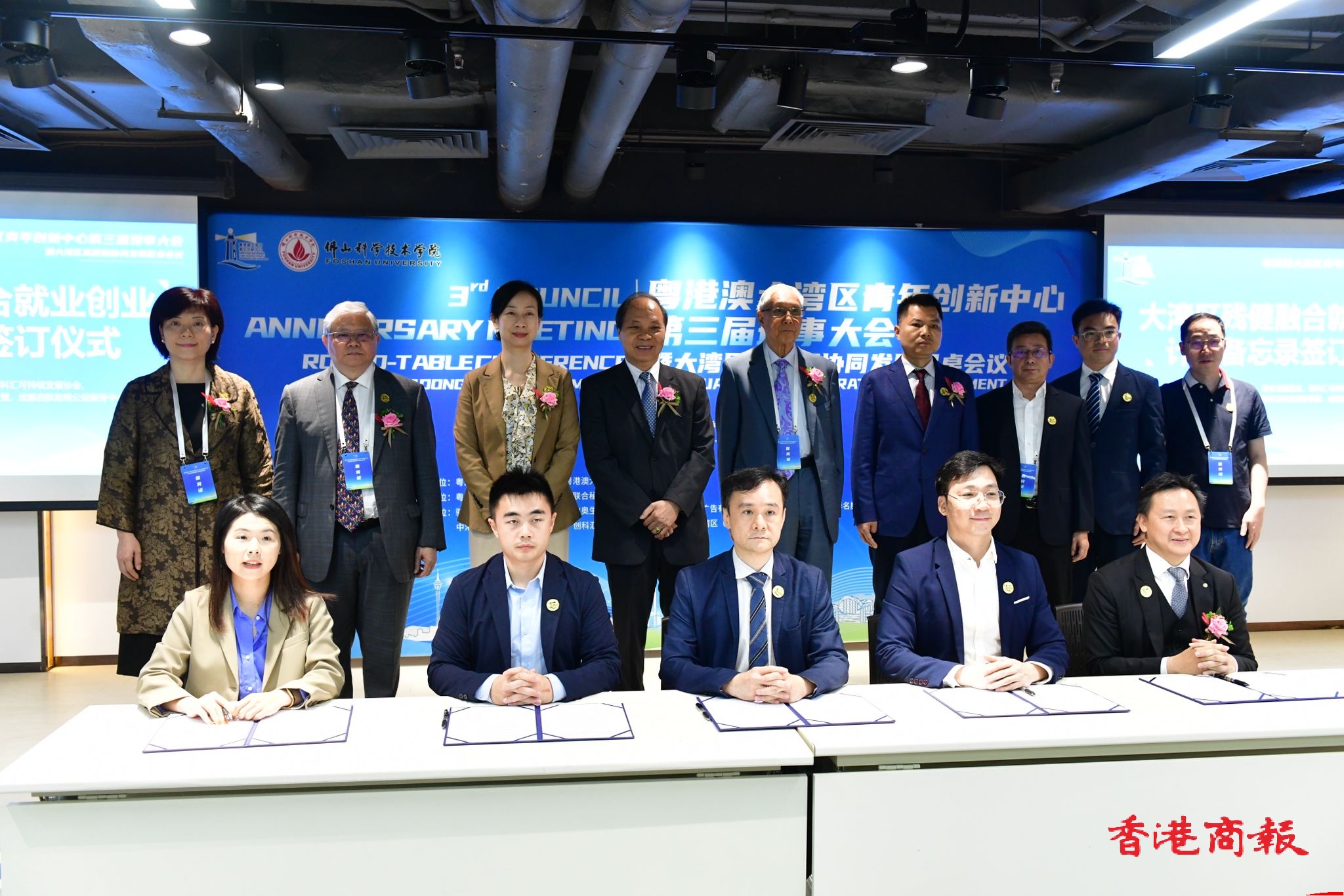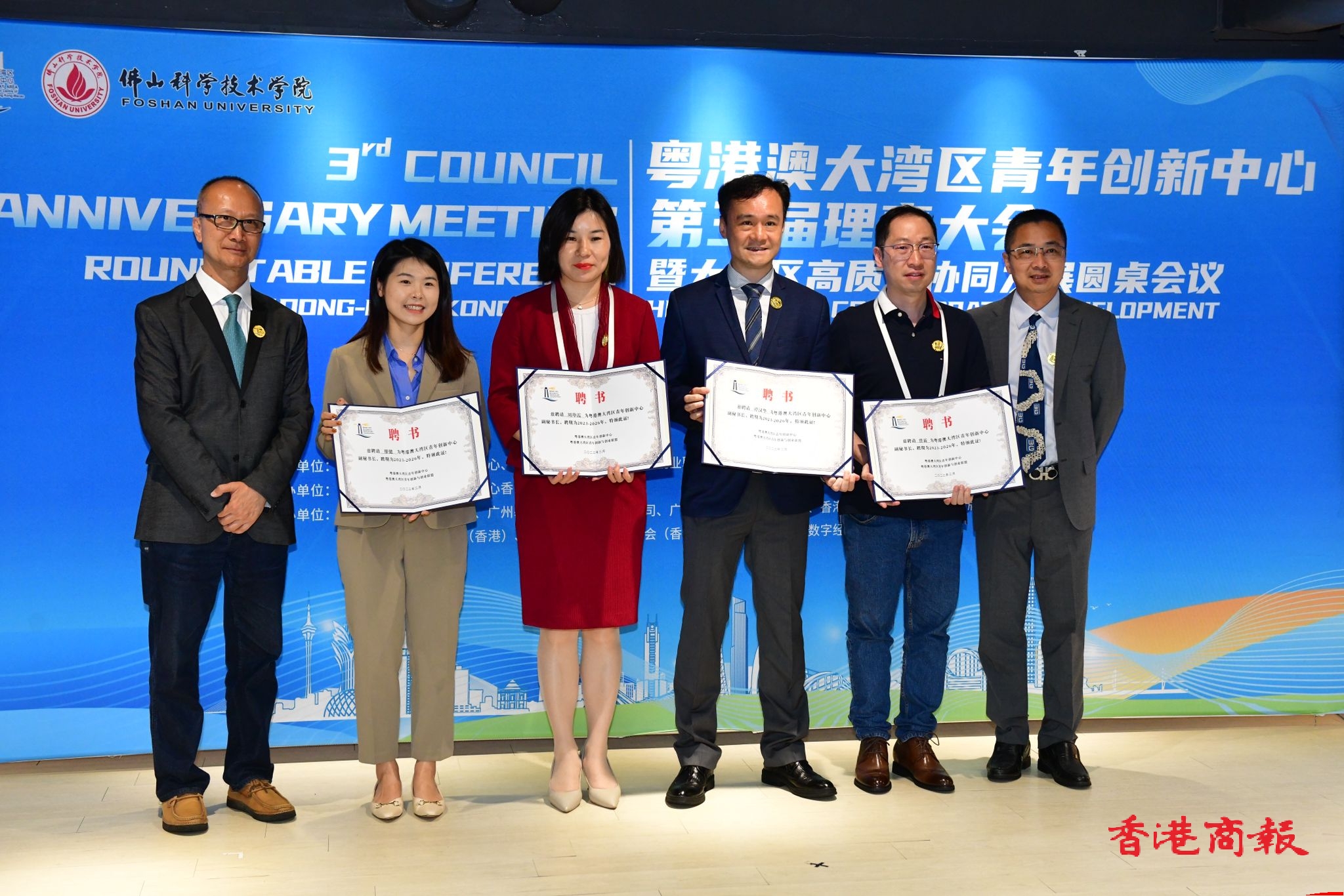 「粵港澳大灣區青年創新中心」第三屆理事會周年大會暨大灣區高質量協同發展圓桌會議,今午(21日)在香港生產力促進局總部舉行。中聯辦青年工作部二級巡視員崔峰、中國中長期青年發展規劃專家委員會委員李家華、勞工處助理處長黃羨儀、廣東省教育廳二級巡視員邱克楠、香港設計中心主席嚴志明、香港佛山社團總會主席鄧祐才等200多人參加會議,理事大會由佛山科學技術學院黨委書記駱少明率領全體理事會成員出席。