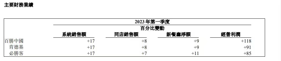 首季新增233家門店,門店總數達13180家。集團對於2023年目標保持不變,淨新增約1100至1300家新店, 資本支出在7億至9億元之間。