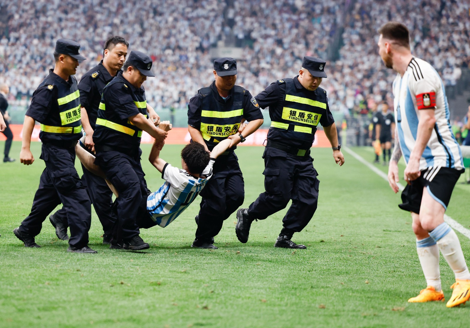 值得一提的是,在比賽期間有球迷闖入球場,最終被安保人員抬離場地。