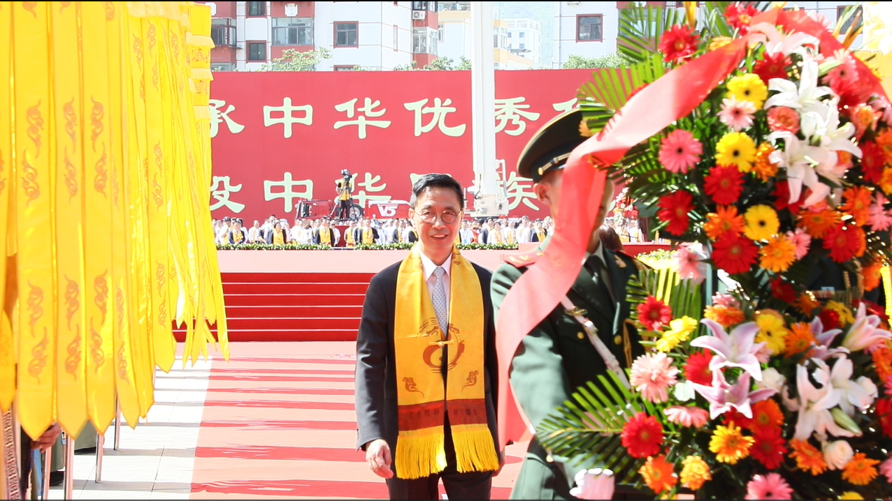 這是一個十分難得的場合,來自不同城市的同胞或華人雖然平時生活在不一樣的地方,擁有不同的文化背景,但到了6月22日這一天,大家齊聚一堂,這當中就有香港文化體育及旅遊局局長楊潤雄,這次他是代表香港特區政府來到天水出席公祭伏羲大典。