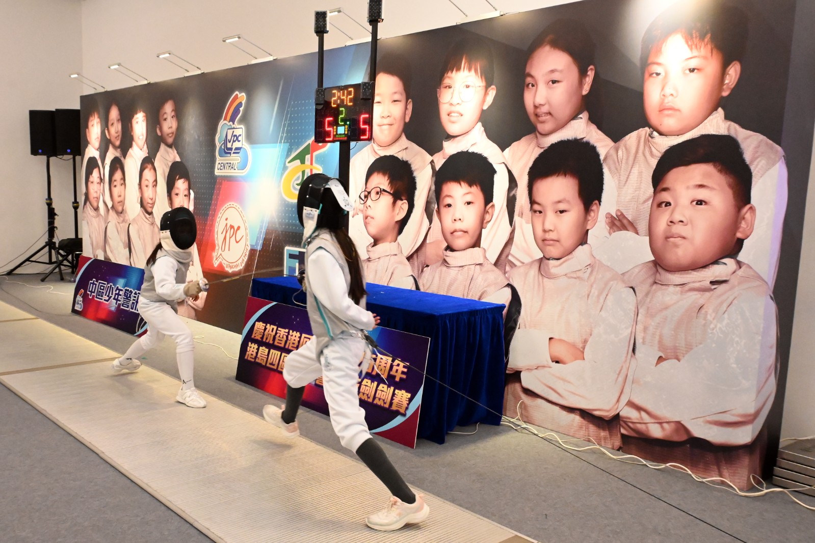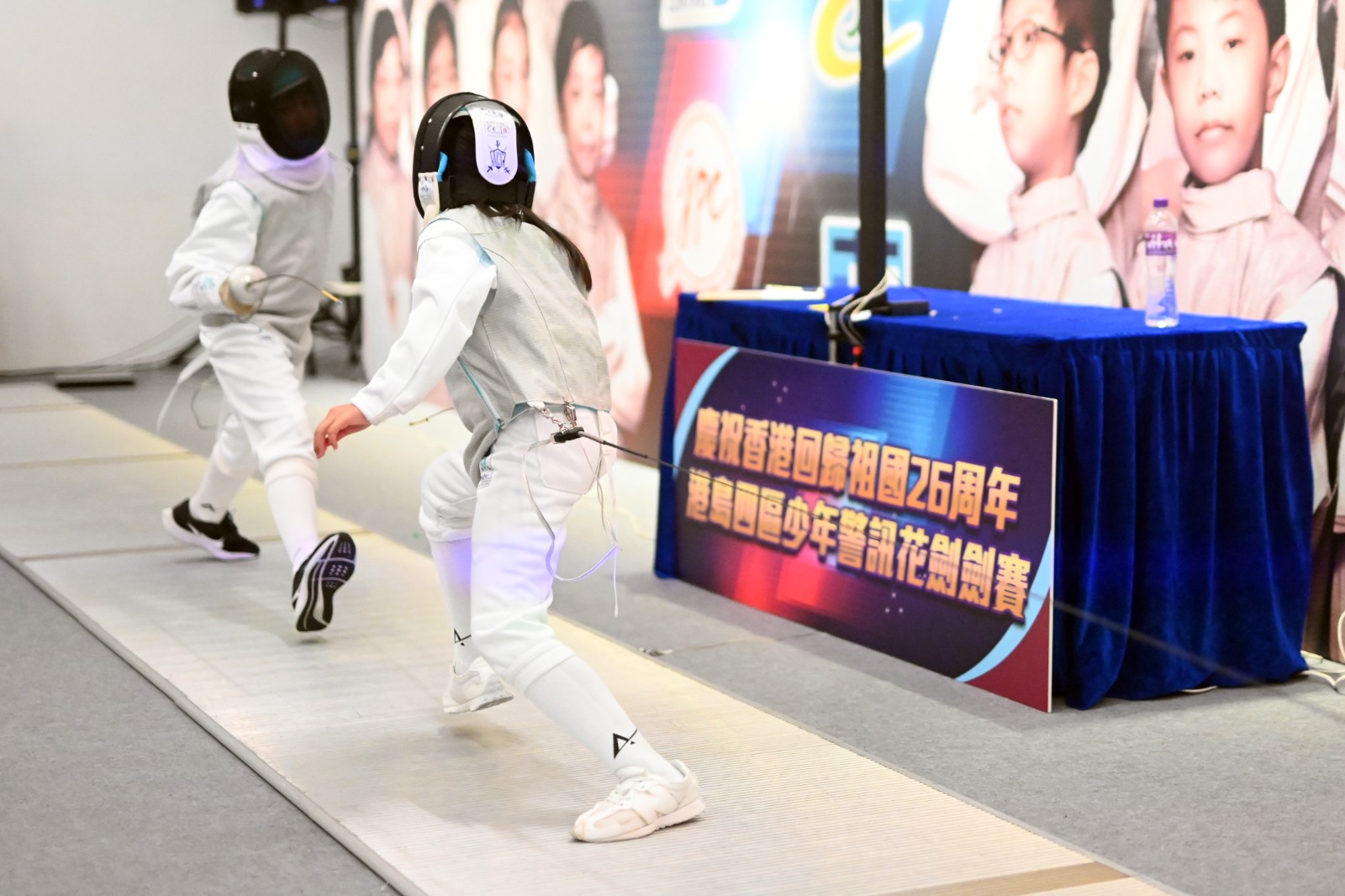 為慶祝香港回歸祖國26周年,由中區警區及中區少年警訊名譽會長會主辦,港島總區三個警區(即東區警區、西區警區及灣仔警區)少年警訊合辦的「港島四區少年警訊花劍劍賽」今日(8日)於大館的 F Hall Studio 舉行。港島總區指揮官郭嘉銓警務處助理處長、中區警區指揮官汪威遜總警司、香港劍擊總會主席楊穎新先生、香港劍擊隊總教練鄭兆康先生為活動擔任頒獎嘉賓,為港島總區的四區一眾小劍手獻上無限鼓勵及祝福。