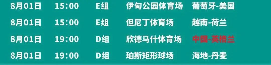 同組的英格蘭女足去年拿下歐洲盃冠軍,勢頭正盛。小組抽籤分組時被劃為第三檔的丹麥女足,如今世界排名第13,比當時第二檔的中國女足還高出一位,近來狀態也十分火熱。之前的熱身賽中,丹麥隊還曾1:0戰勝傳統勁旅瑞典隊,1:0戰勝日本女足。