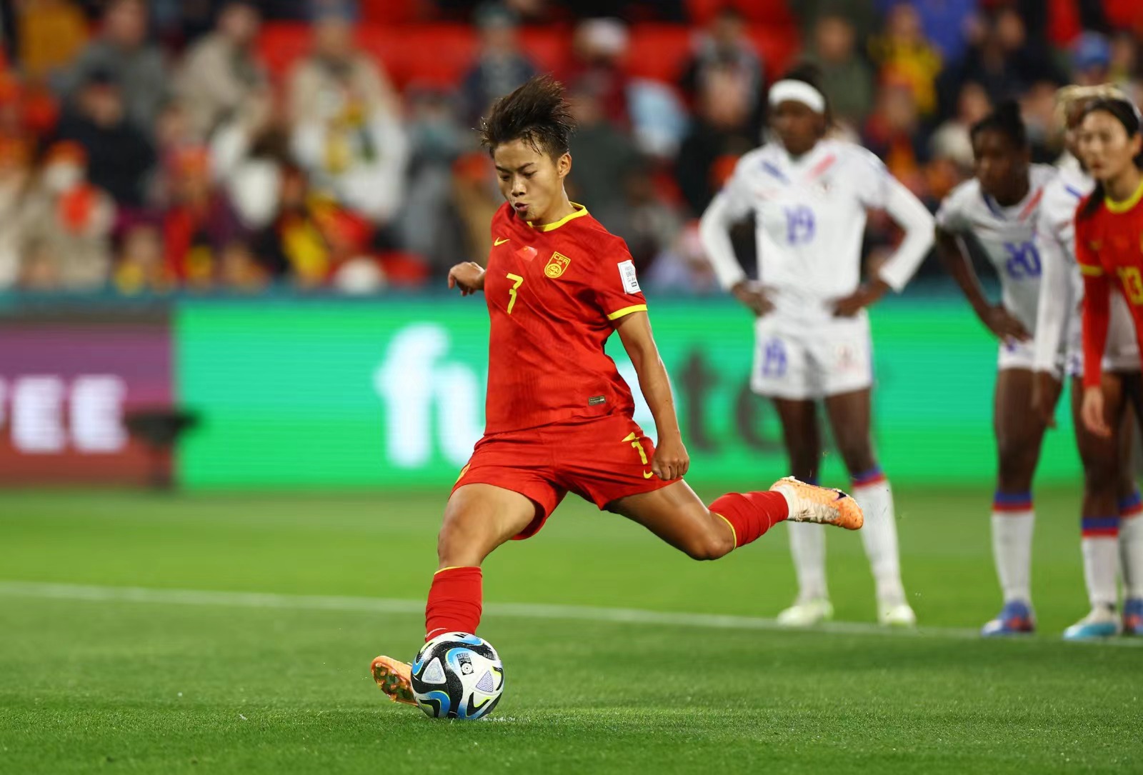 鏗鏘玫瑰下半場作出調動換入王霜,她的腳下功夫以及傳球能力,令球隊在被動形勢中,仍可偶爾作出反擊。而門將朱鈺則作出了一次關鍵撲救,擋出了海地的杜摩莉的近射。大難不死的國家隊在74分鐘獲得12碼機會,王霜妙傳予張琳艷,後者禁區內被對手踢跌,球證在VAR協助下判以極刑,王霜冷靜地射地波入網成1比0。及後中國女足還有一次絕佳機會,但張琳艷的近門頭槌越楣而去。戰至補時階段,球證指中國隊球員在禁區內爭頂時犯規,判罰12碼,但在VAR提醒下推翻判決。結果鏗鏘玫瑰保住1比0勝局到完場,取得今次決賽周首場勝仗。