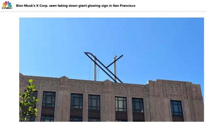 然而,當地時間7月31日,美國消費者新聞與商業頻道(CNBC)注意到,工人們拆除了「X」標誌上面的燈和字母的一部分。