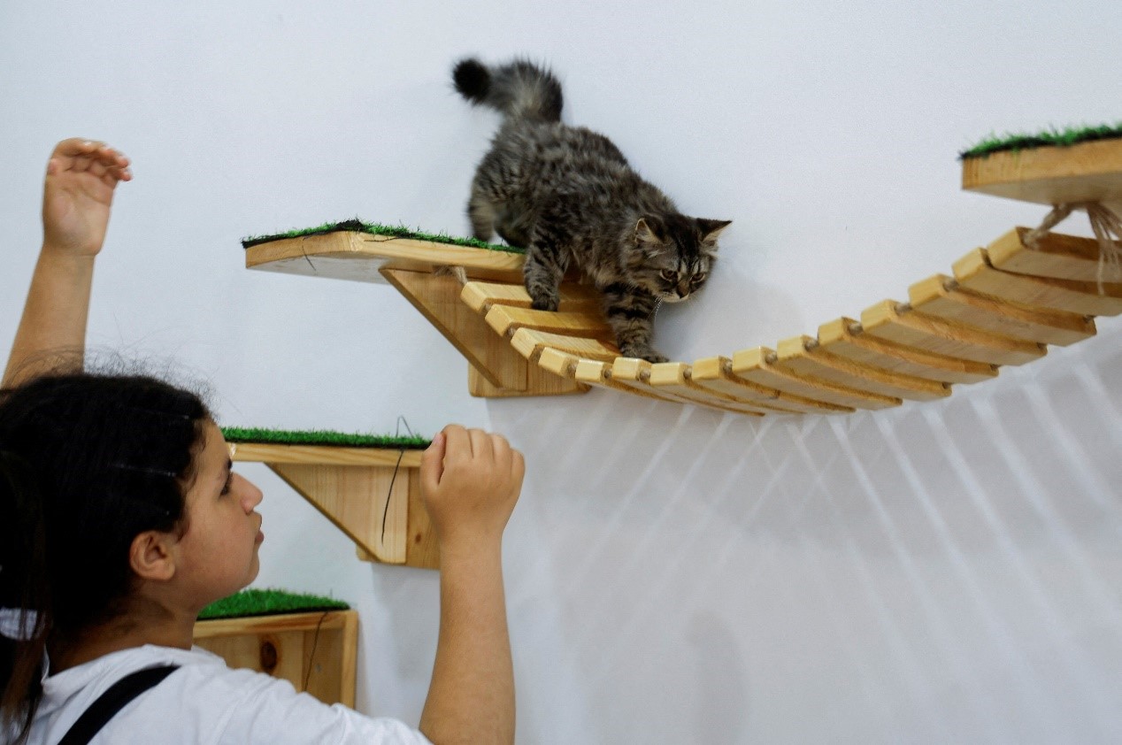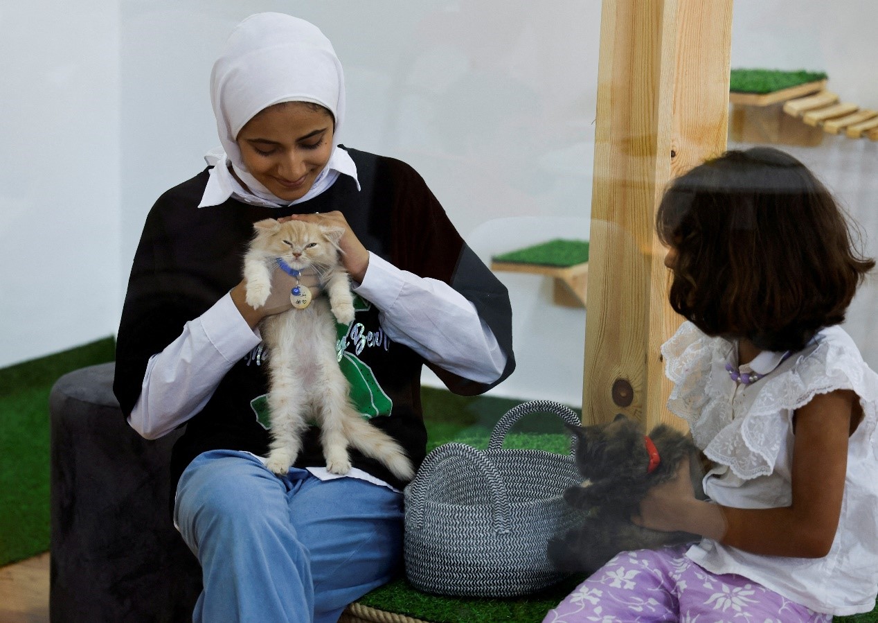 巴勒斯坦的加沙市,最近開了一家貓Cafe,供民眾來這裏與貓咪玩。