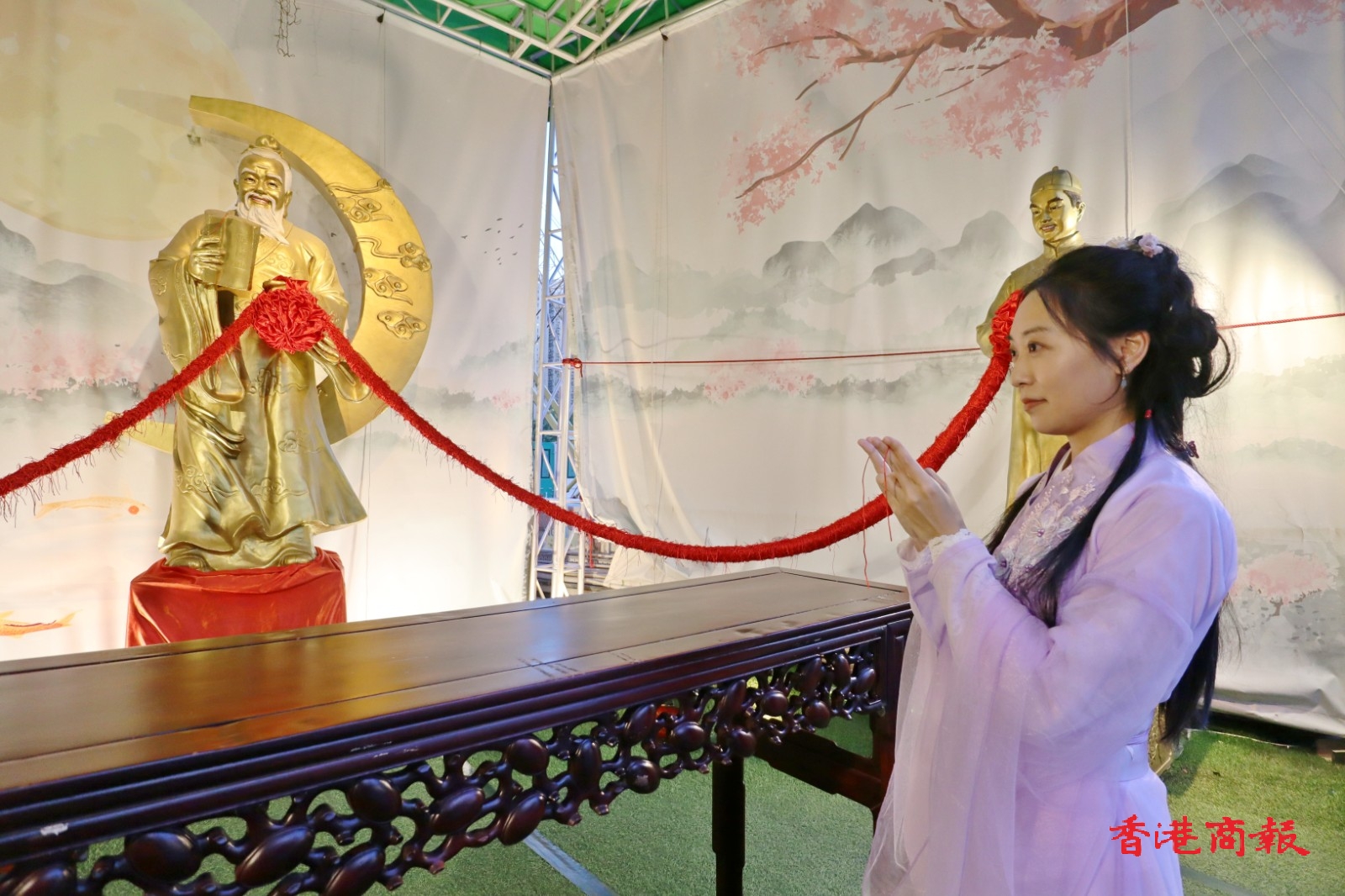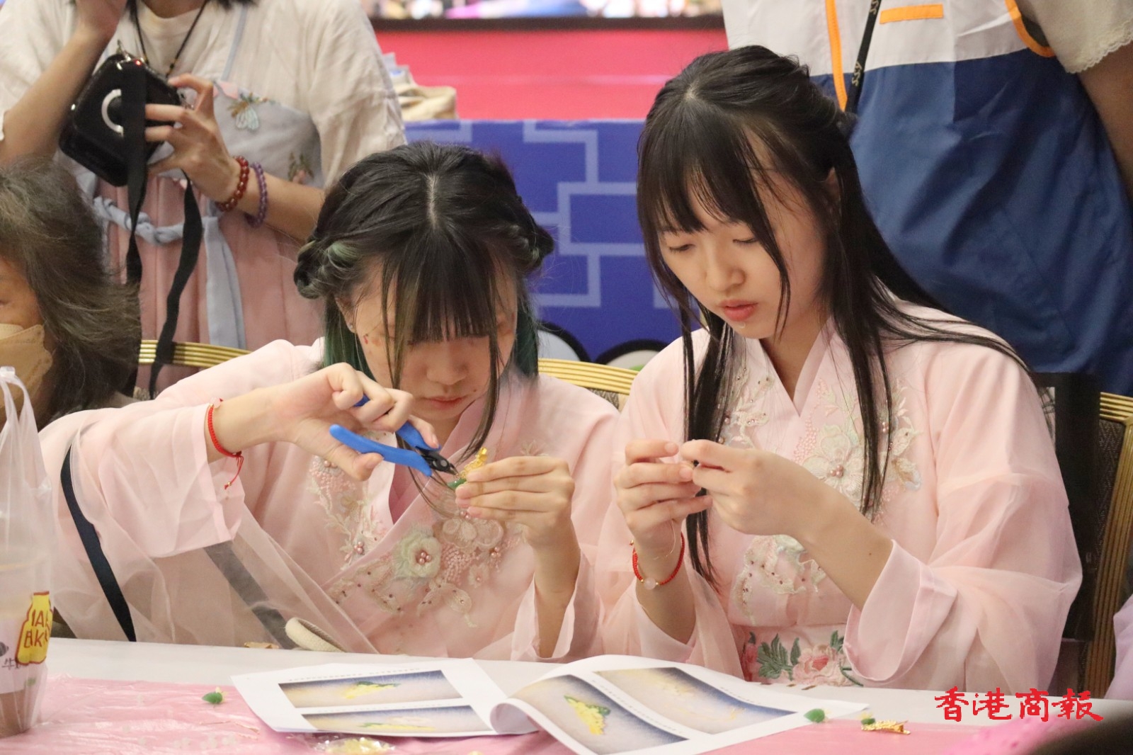園內亦為善信設有各項具傳統特色的活動,包括傳統刺繡、頭飾製作、繩結及玫瑰花工作坊,讓大眾感受古代閨閣仕女的生活,同場設有即影即有攤位、七姐盆展示區、月老姻緣一線牽,更有七夕歷史文化展。希望大家祈求神明庇佑、遊園玩樂之餘,也能了解七夕文化背後的歷史意義,承傳中華傳統文化。(圖片:記者 馮瀚文 攝)