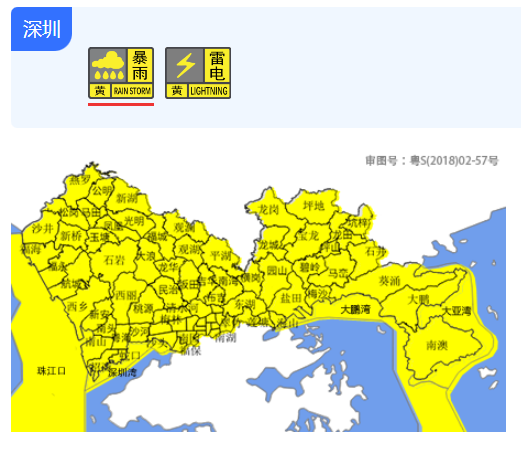 據@深圳天氣 消息,深圳市氣象台8月29日13時15分將分區暴雨黃色預警和雷電預警擴展至全市,預計未來2-3小時全市將出現30-50毫米降水,並伴有雷電。全市進入暴雨戒備狀態,請注意防範。