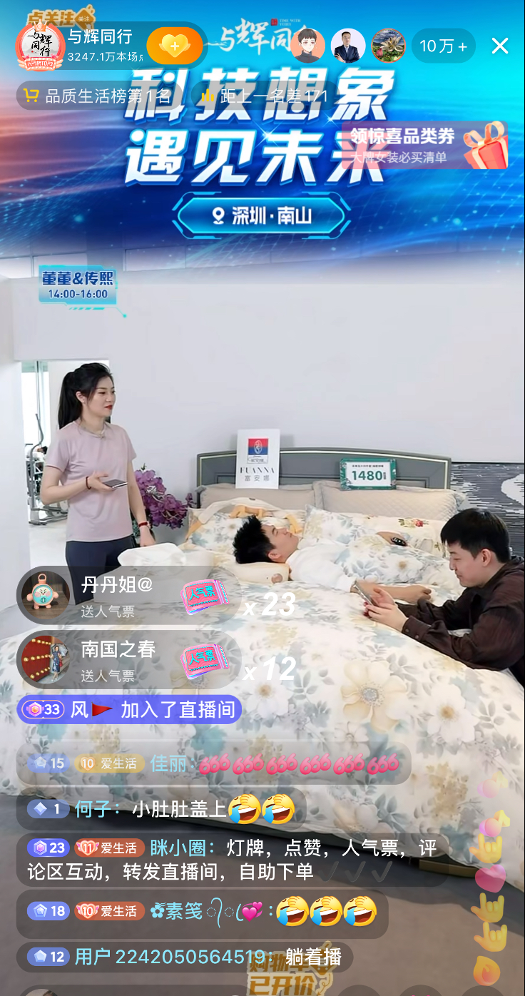 5月28日上午10點,「與輝同行」直播間深圳南山專場直播「科技想像,預見未來」準點開播。