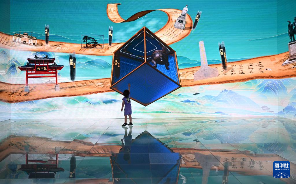 小朋友在文博會科大訊飛展台體驗3D奇幻空間(5月24日攝)。新華社記者 鄧華 攝