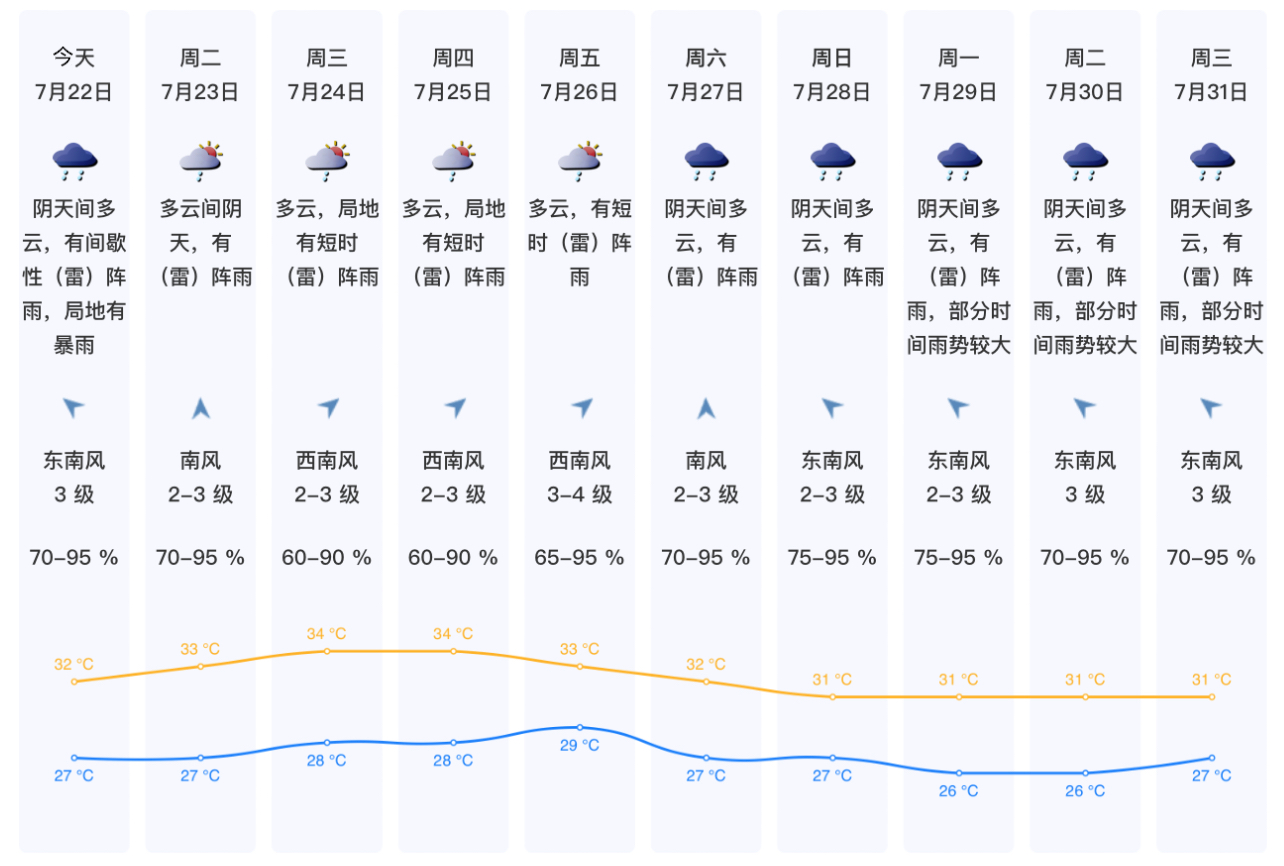 全國從南到北都處於早晚溫差最小、全天氣溫最高的狀態