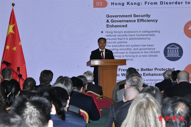 崔特派員在宣講中全面介紹了白皮書主要內容和重要意義,回顧了香港回歸以來維護國家安全的主要鬥爭,闡明了中央政府對香港有關國家安全事務所負根本責任、香港特區履行維護國家安全的憲制責任,宣介了香港從由亂到治走向由治及興在良政善治、司法法治、經濟發展等方面取得的成就,並分享了「一國兩制」下香港維護國家安全的實踐經驗。