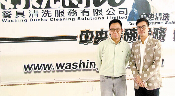 方漢彬(左)與沈錫然(右)朋友檔開設好洗得餐具清洗服務有限公司