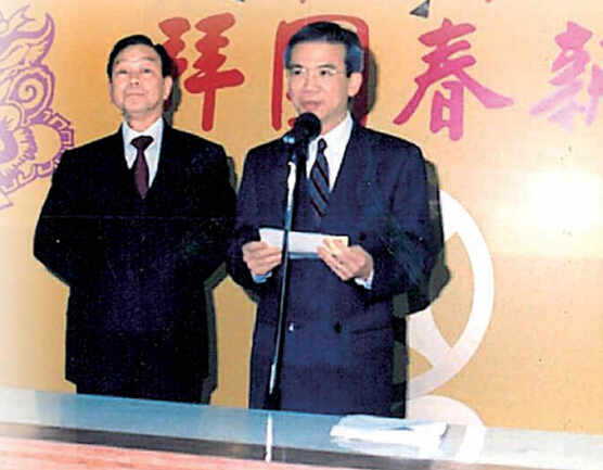 2001年1月30日,林煥光(右)參加鄉議局舉辦的新春團拜,與發叔喜相逢。