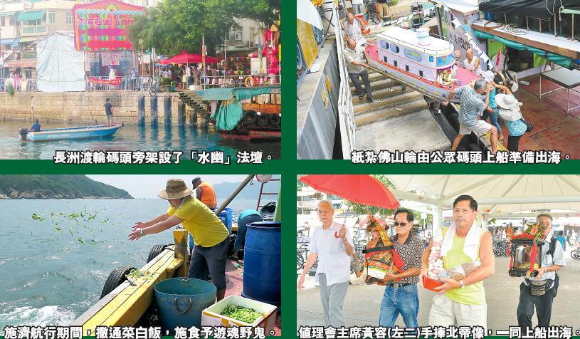 長洲今天人口逾3萬,一片繁盛景象,並且已成為旅遊勝地,但昔年還是漁港時,每遇極大天災如颱風襲港,岸邊必見傷亡。因此每年踏入農曆七月,會舉行盂蘭勝會,祭祀水難亡靈,並祈求長洲水域安寧。今年法事在9月7日至9日(農曆七月廿五至廿七日)進行,長洲渡輪碼頭旁架設「水幽」法壇,多名由青年時期便參與勝會的中年及長者居民必恭必敬地進行祭祀,其中重要儀式是將紙紮大輪船放在海面,以超度44年前發生在大嶼山東北角的佛山輪海難中的88名亡魂。香港商報記者 鄭玉君