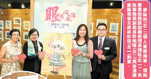 聲音與繪畫雖然看似沒有關連,但對唐詠然(Apple)而言,耳不能聽,卻啟發了自己的繪畫愛好。因為先天性聽障,令她學會以畫代口。她自小愛好繪畫,近年她不僅在比賽中屢獲佳績,今年更在被喻為「殘疾人士技能奧運會」的「第九屆香港展能節」中連奪3個獎項,獲卡通人物設計、創意繪畫及海報設計比賽一等獎。她透過荃新藝廊及香港展能藝術會的協助下,更在9月7日舉辦自己首個個人畫展。