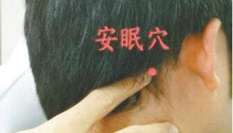 第二步,按揉安眠穴1-2分鐘(安眠穴是經外奇穴,位於耳后凹陷處和枕骨下凹陷處的連線中點)。