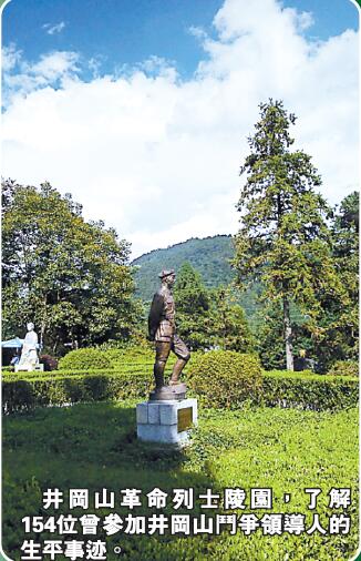 在井岡山革命烈士陵園,了解154位曾參加井岡山鬥爭領導人的生平事籎。茨坪中心的東山腳下、挹翠湖邊則有茨坪毛澤東舊居(茨坪革命舊群),當年毛澤東曾在此召開黨政軍會議。茨坪西南面大井朱毛舊居,茨坪西北面的小井紅軍醫院,曾遭戰爭燒毀後又按原貌修復的客家民居建築依舊。茨坪西北面黃洋界哨口則是扼守湖南、江西兩省戰略要地,曾數次激戰。茅坪八角樓更是毛澤東提出「工農武裝割據」思想,撰寫兩部井岡山革命理論著作,從而奠定井岡山鬥爭的理論基礎。