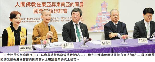 「人間佛教在東亞與東南亞的開展」國際學術研討會11月14日至15日在香港中文大學舉行。來自中國、新加坡、韓國、越南等東亞與東南亞國家的38位學者和宗教人士出席了是次研討會。會議由香港中文大學人間佛教研究中心、佛光山人間佛教研究院、香港大學佛教研究中心、佛光大學佛教研究中心、南華大學人間佛教推廣研究中心共同舉辦,旨在提供討論平臺,探討人間佛教在跨文化的傳播過程中,如何化解沖突、體現文化多元發展等當今佛教界共同關心的議題,以期促進不同地區人間佛教與人間凈土的研究,推進當代人間佛教的深度研究。香港商報記者 若笑 柳燕