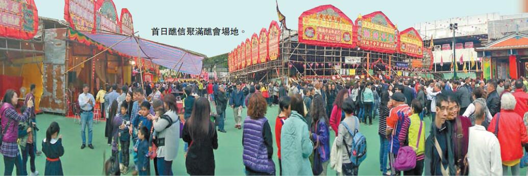 【香港商報網訊】記者周駿報道﹕相傳光緒年間,沙田鄉中父老鄉親為控制正在爆發的瘟疫蔓延,請出車公神像遍遊各村驅病辟邪,最終消除疫癥,村民為此於神前許願,每10年舉辦一次太平清醮,以酬謝車公神恩。該鄉習俗傳承百年,今年正值沙田九約10年一屆太平清醮,醮會已於11月23日(農曆十月十二日)開始一連4日5夜於可容納3000醮信的牛皮沙遊樂場舉行。首日啟壇建醮,本港政商及各界嘉賓雲集解禳典禮,萬創國際即場捐款118萬元,醮會發言人稱,沙田區議會、香港賽馬會及華人廟宇委員會等機構、團體捐款已入帳約170萬元,數筆捐款逾300萬元,相信整個活動中醮信善款數百萬元。