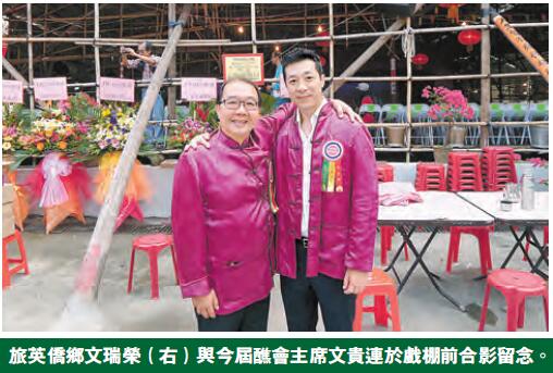 文氏第26代傳人、亦是今屆名譽會長、旅居英國僑民文瑞榮表示,已參與4屆清醮活動,今年9月再次由英國回港參與今屆醮會工作,同時,也是為探望村中82歲年邁母親。他稱,他是在英國出生、學習及工作,今次回港前已辭掉英國銀行業務主管工作,而申請特區政府優才計劃已獲批準,他計劃明年春節后在港尋找合適的工作,現時他的家姐及妹妹仍在英國生活。