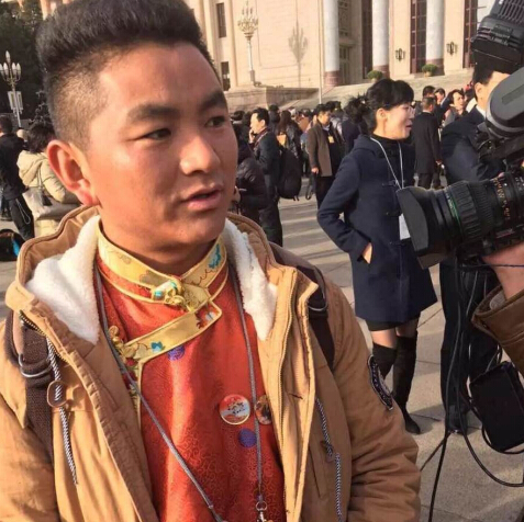 • 西藏代表團戴領導人胸章入場