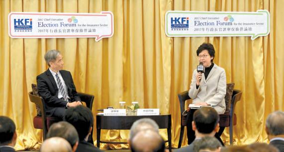 【香港商報網訊】記者潘仲男報道:香港保險業聯會昨日舉辦行政長官選舉保險界論壇,兩位候選人胡國興及林鄭月娥先後出席,向有關界別選委闡釋其政綱,另一位候選人曾俊華連續第2日沒有出席特首候選人論壇。林鄭月娥表示,寫出令人欣慰的政綱外,執行力更為重要,會努力去證明有能力及決心做好基本法所要求的行政長官職責。
