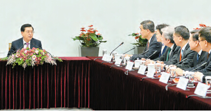 張德江昨下午抵港後,首先在下榻的灣仔君悅酒店會見行政長官梁振英;其後,在梁振英陪同下到達政府總部,聽取特區政府工作匯報。政務司司長林鄭月娥、財政司司長曾俊華和律政司司長袁國強在場迎接;出席的匯報人員還包括特區政府13局局長及常任秘書長。