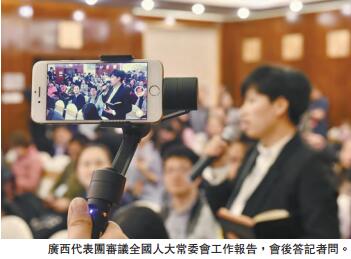 【香港商報網訊】記者唐琳、歐陽萍報道:「李克強總理強調,廣西要堅持把發展更多的體現在增進人民合作上,依靠改革開放來推動發展,推動新舊動能加快轉換。」廣西壯族自治區黨委書記彭清華在9日舉行的廣西代表團開放日全體會議(圖)上表示,全國兩會結束以後,廣西要積極落實貫徹,繼續加強對地方立法等各項工作的指導和幫助,健全人大討論決定重大事項制度,繼續加強本地方換屆選舉工作的指導和幫助。