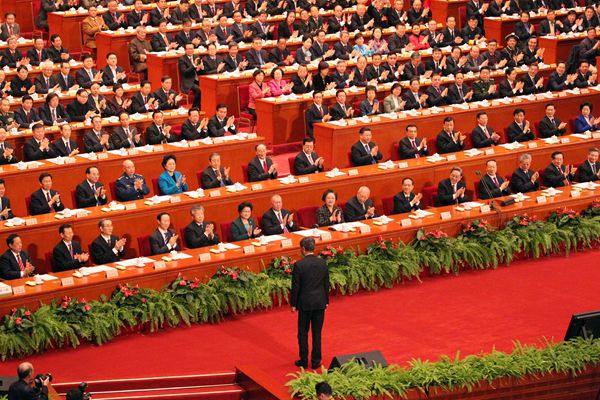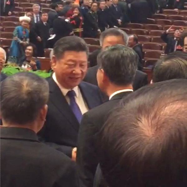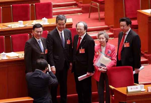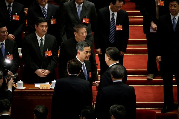 昨日大會結束後,國家主席習近平與梁振英親切握手,勉勵他繼續為國家、為香港做好服務。路透社