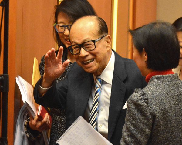 對於引用「女媧補天」神話故事是否意味撐林鄭任香港首位女特首,李嘉誠笑言,「神話只有『女媧補天』,不能硬說『男媧』」。記者 蔡啟文攝